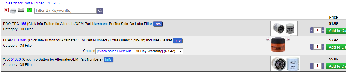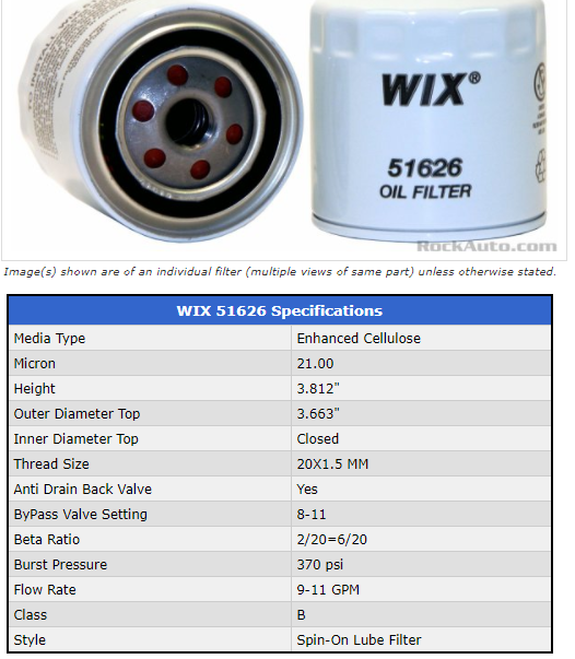 Good data, question? I thought the purpose of the relief bypass was to make sure the engine didn't starve for oil if the need exceeded the flow rate of the filter?So, going to Rockauto.com let's look at that PH3985 and see how well of a cross reference we get for your