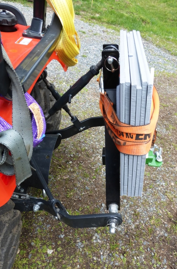 My solution is an inexpensive 3pt hitch with a 2inch receiver and some 1/2inch thick plate steel (Calculate Weight of a Steel Plate | Chapel Steel).