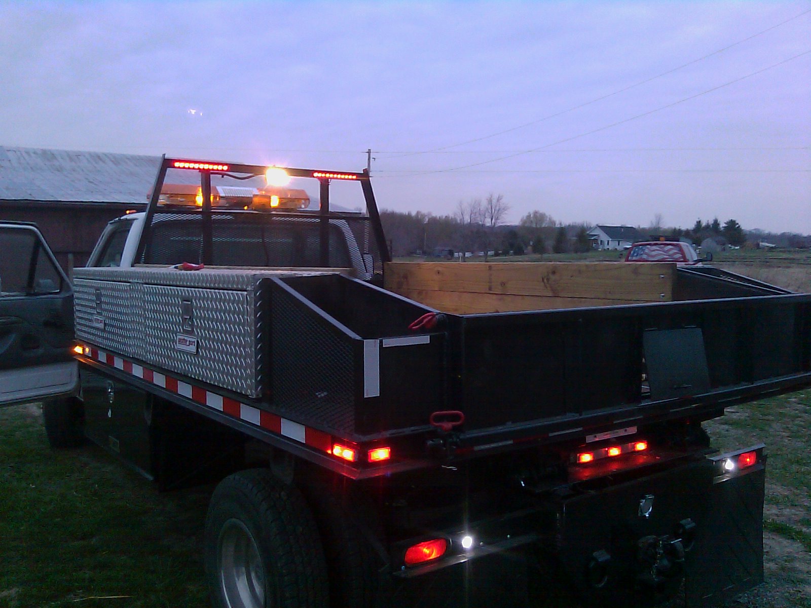 I have 2 8 foot 16 x 12 boxs on the top of the bed along with a 2 foot open box to put stuff in, then put 2x behind to keep dirt and rock from the boxes. Then on the bottom I put a 48x18x18 box on the drivers side which has the pump and a 2500w inverter in it them I am putting a 48x24x18 box made out of expanded metal to put my fuel cans and other junk in on passanger side.