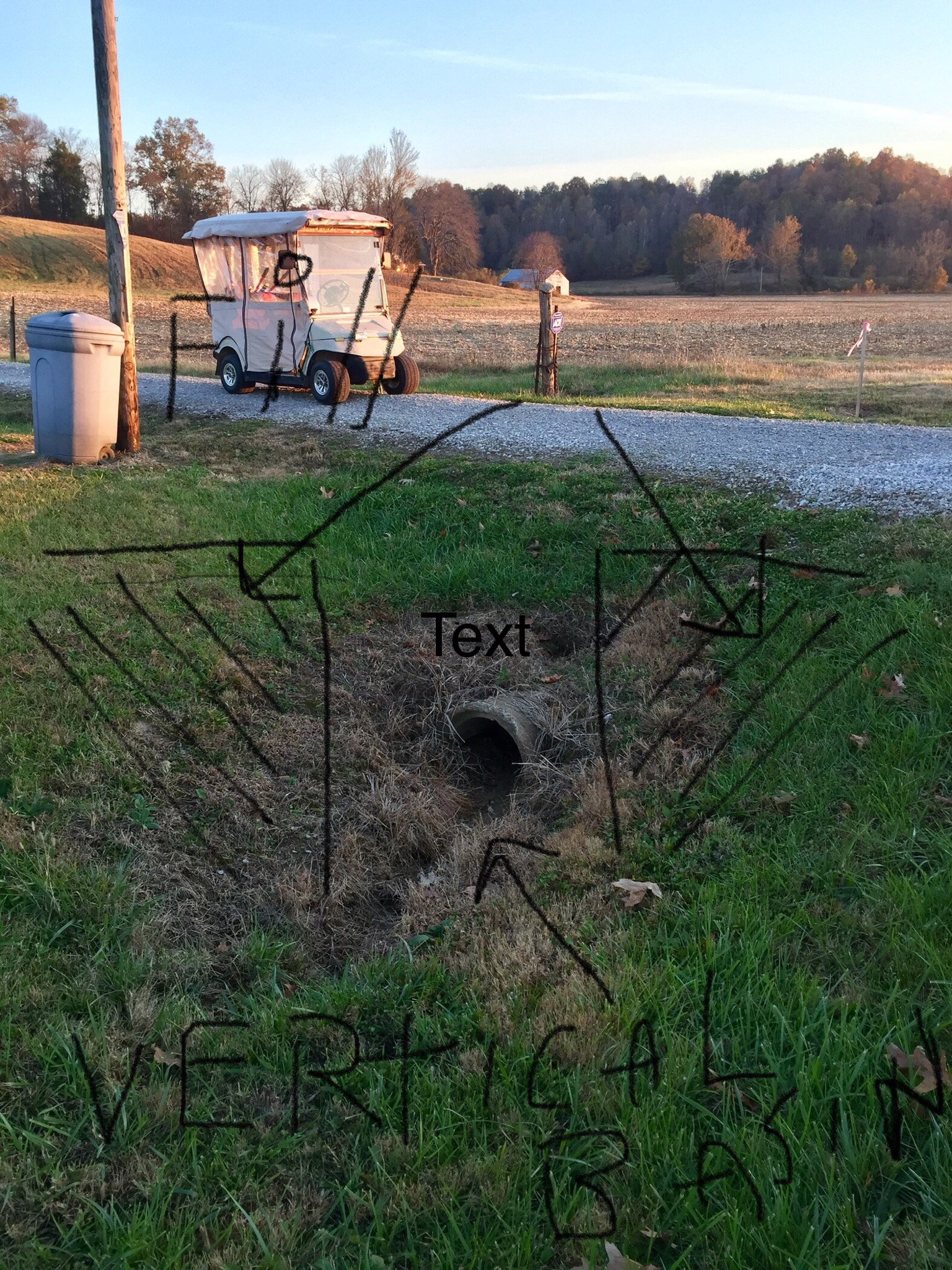 My thought was a vertical perforated pipe surrounded by large gravel that water could flow through.If I was going to do something like that I would lay a perforated pipe with gravel over and under in the existing swale pitched toward the catch basin (riser)...so it flows into it...(i.e., dry-well)