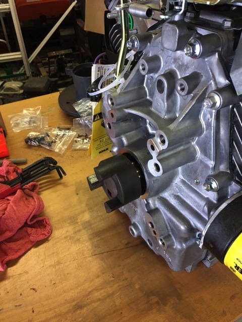 The front pump coupler seems much larger than the one that was on the Subaru. The new one is a big lovejoy aluminum one. On my Robin Subaru there was a small shaft on the front of the pump. There isn't a shaft on the front of the pump. The new coupler has 4 allen bolts that bolt to the flywheel assembly. I have a new engine stand that was made for the Kohler. Only difference from the original stand (robin subaru) it appears to be about 1/2" taller.