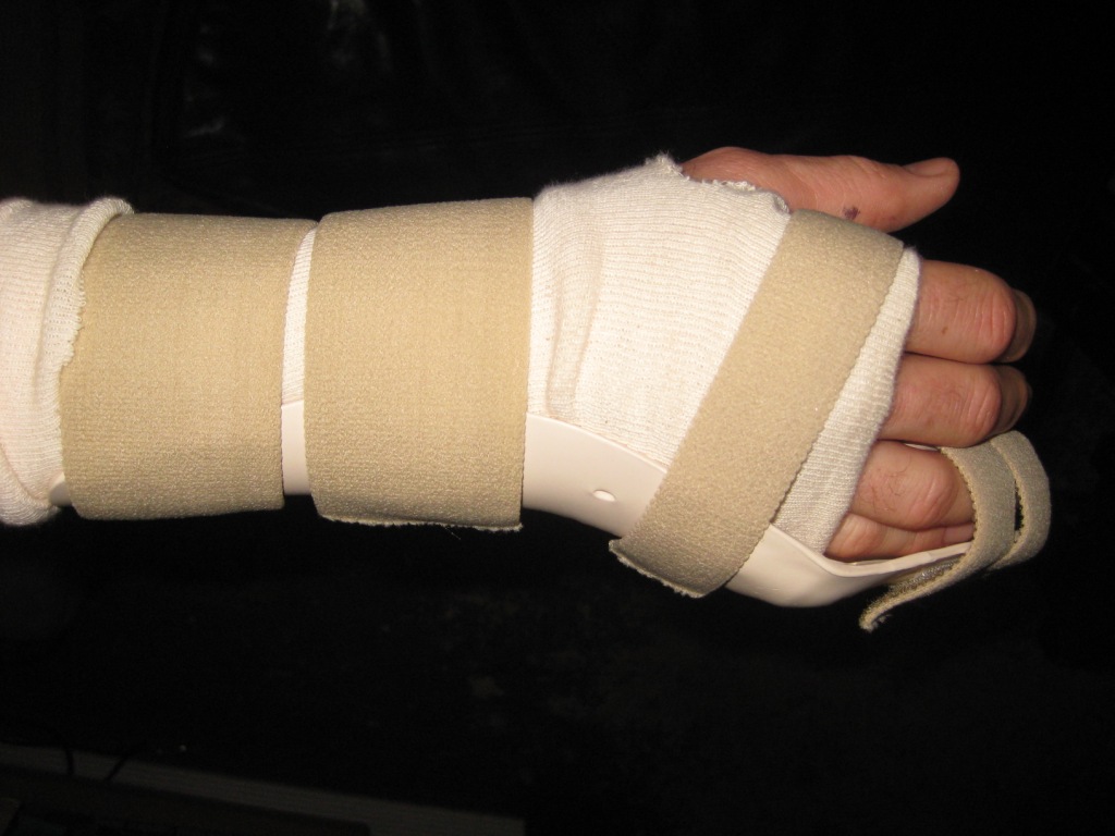 The picture of the hand shows off the very nice brace I got from the orthopedist when I got a radial fracture in my right hand