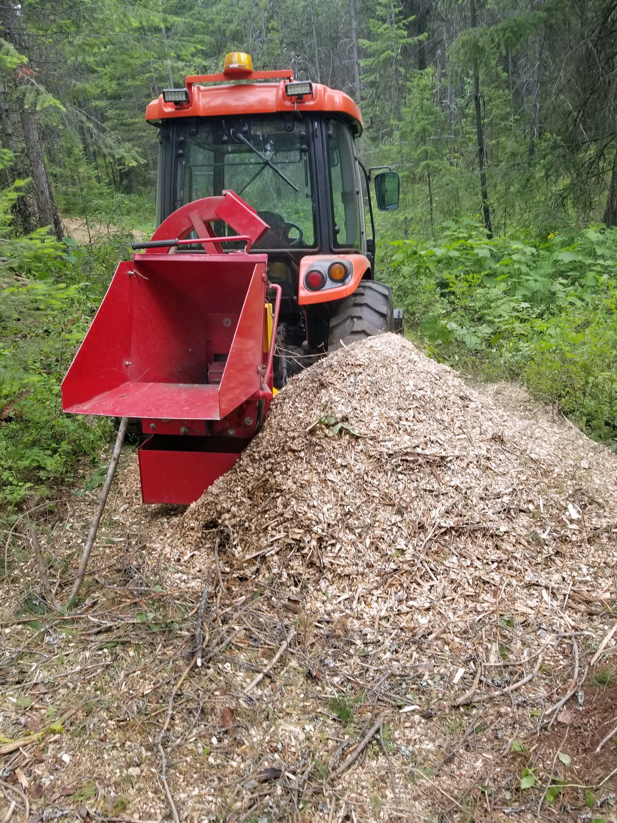 Looks like the one I had and subsequently sold. I set it up to run on one of my 90 horse Kubota tractors. I did add a weasler slip clutch so I wouldn't destroy it but it held up and I sold it for exactly what I paid for it on FB market place in 2 days. 90 pto really eats up logs well.ive been using my chipper for the last 15 years. it used to run on a 28HP tractor and did a soso job chipping. It now runs on my 45KW tractor and can chip up to 6" logs very reasonably. i also use my chips on the trails. it amazing how little trail gets covered with a huge chip pile though. the chips help keep grass from growing on the trail.