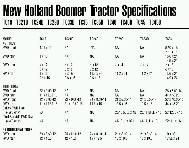 I have (had?) a "collection" of brochures from my shopping around. I was always interested in turfs so that is what I paid attention to and depending on the brochure they were listed as 29x12.00-15 or 31x13.5-15. I thought it might be dependent on age of the brochure where they introduced the line with the smaller tires, then decided to use a larger size.