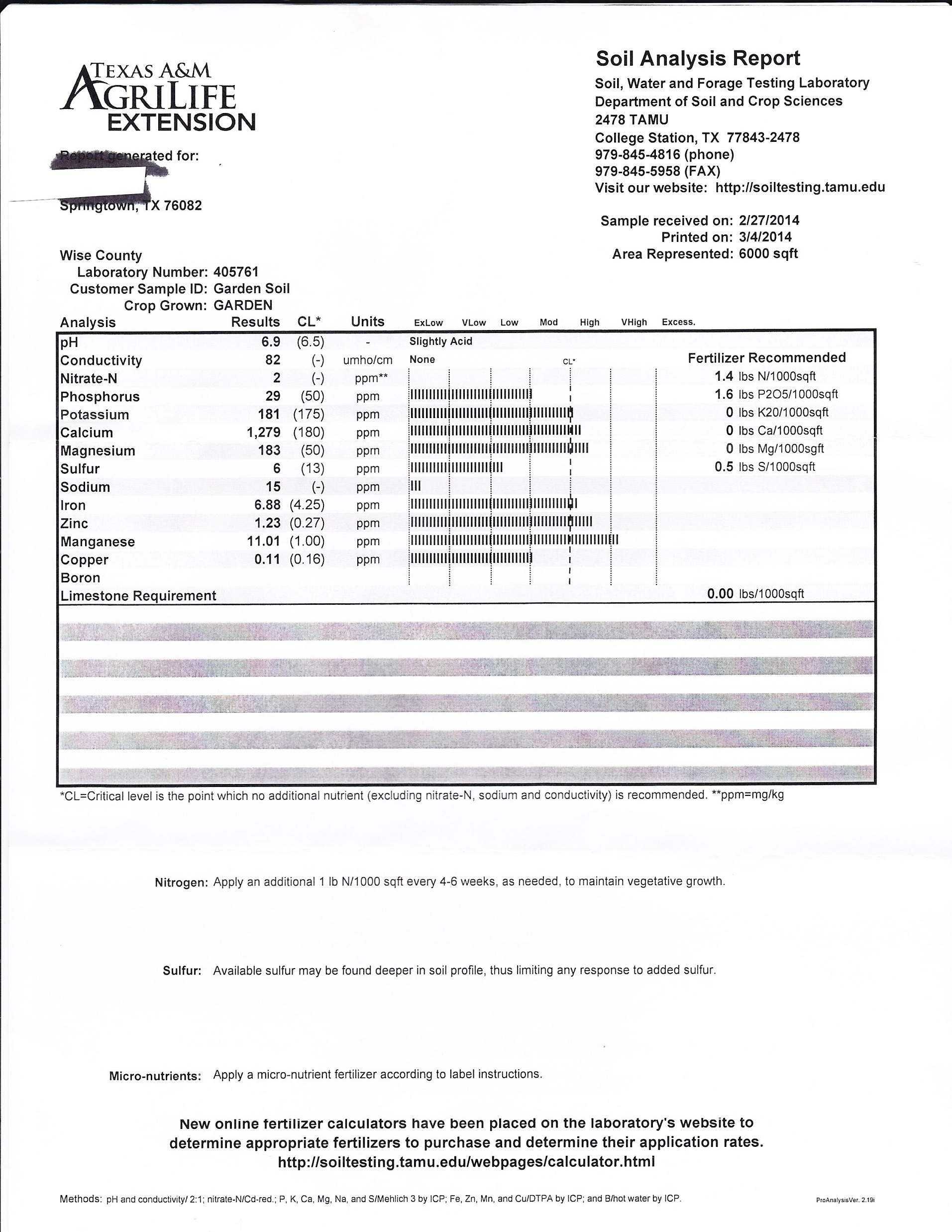 Got my soil sample back the other day, they changed the format somewhat, or it is different for a garden vs a hay field. I like the web site they added (at the bottom), you can input your SS results and get commercially available fertilizer recommendations.