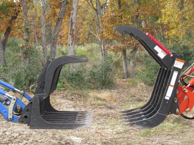 The Bucket style grapple is on the left and the rake style grapple in on the right below.