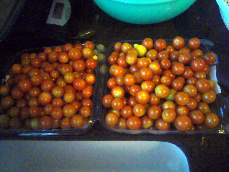 Yesterday, I picked beans and my wife helped me pick blackeyes. We got a 5-gal bucket of blackeyes. My grandson picked over a gallon of cherry tomatoes and then we picked big tomatoes. All our window knick-knacks are big tomatoes. The refrigerator is full too, even after giving loads of tomatoes to our neighbors. These are cellphone photos with horrible lighting, but I think you can get the idea.