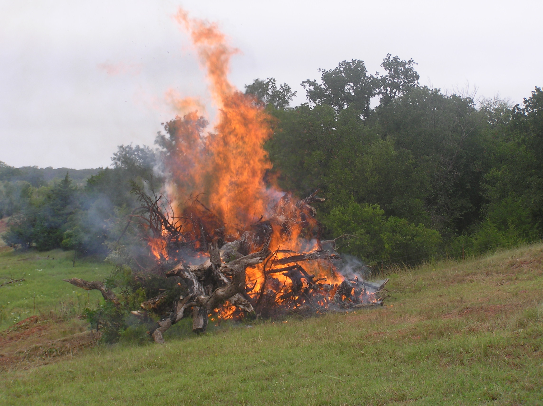 Great pics and story! I would bet $100 this was not radiant heat, but rather that an ember from the fire had floated over and settled into a portion of the rotting trunk at the top of the tree. We live in a small acreage community and a neighbor down the street had to call the fire department when his small leaf and limb cleanup fire sent an ember up into a 50+ year old Oak on the other neighbor's property line. Turned into a full fledged fire at the top of the tree where dry leaves had nestled into a fork, but the FD was able to put it out quickly. Everyone had a good laugh, but burning is serious business, especially with other trees in close proximity. I have verified the travel distance of hot embers while performing burns after dark. Those big fires look an order of magnitude more impressive when their tracer fire can be seen a hundred + feet in the air and a hundred + feet downwind too at night. Thanks for sharing this cautionary tale!