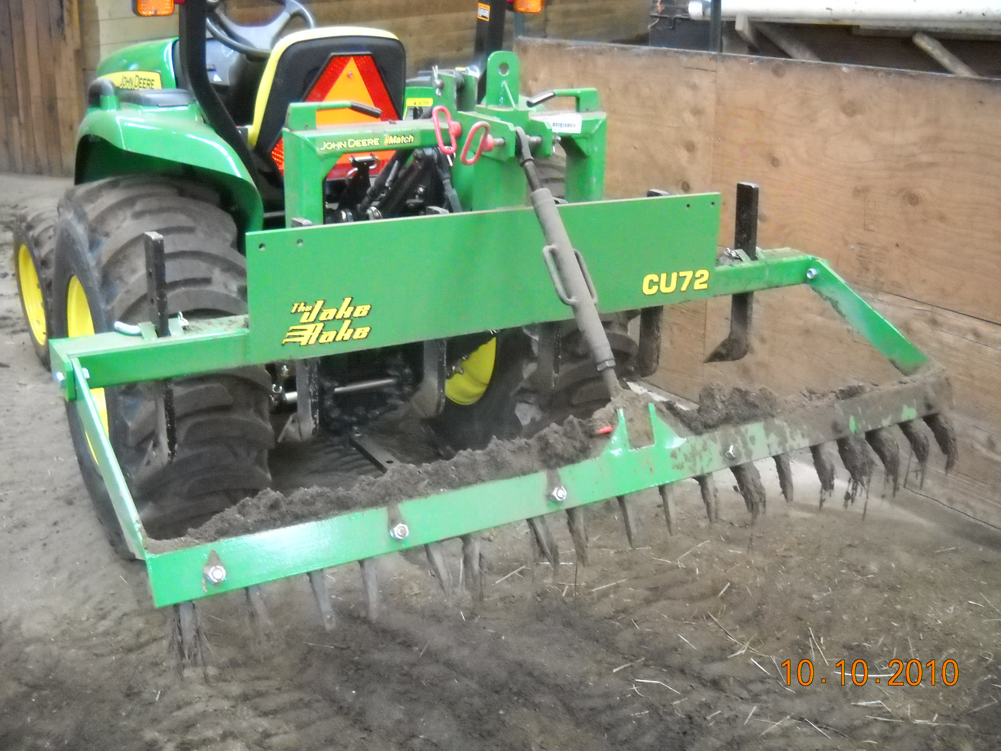 There is a new breed or rakes on the market now, and they are ready to get to work on your horse arena. Designed to cultivate, level and harrow horse riding arenas, the Jake Rake will provide that good footing that your horses dream of. It all starts by the scarifier teeth which will break down hard packed soil. Spring tooth harrows can get hung up on hard packed clay and create chunks of earth that pay a toll to good footing. The Jake Rake is fully adjustable, the scarifier teeth are pined on and can easily be moved up or down for deep tillage or grading the arena. Competitor products feature bolted on shanks that require tools and time to move up and down. Also, The Jake Rake offers infinite adjustments for the rake with the adjustable top link where as other products have either welded in place or bolted rakes that require tools to adjust. The Jake Rake is virtually maintenance free without bearings and grease Zerk's, all that is needed to maintain is the teeth. No other competitor product offers the feature to add weight to their product. The Jake rake can hold up to 16 of the 40 pound suitcase weights which is a huge advantage for down pressure or ballast when using the FEL. Every Jake Rake is quick hitch compatible and feature category 1 linkage pins. There are 3 models to choose from, the SC48, CU60, and CU72. The SC48 is designed to be pulled by a sub compact utility tractor. Being only 4 foot wide, you gain the ability to operate in tight quarters while still getting that great footing that the larger models offer. The CU60 is the perfect size for tractors ranging from 20-30 hp. Being 5 foot wide, the CU60 will cover the tracks of a tractor 50" wide and provide that great footing desired by horse people everywhere. The CU72 is our largest, and most popular model which is best suited for 30-45 hp. The CU72 will cover your tracks and get the job done fast. This patented product is the new addition to the arena rake market and it is ready to work. Custom colors are available. Made in the USA! :thumbsup: Reclaim your arena today!