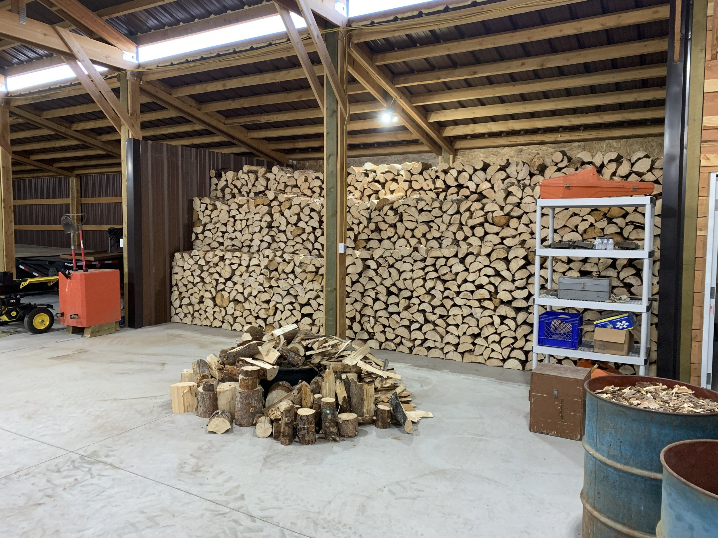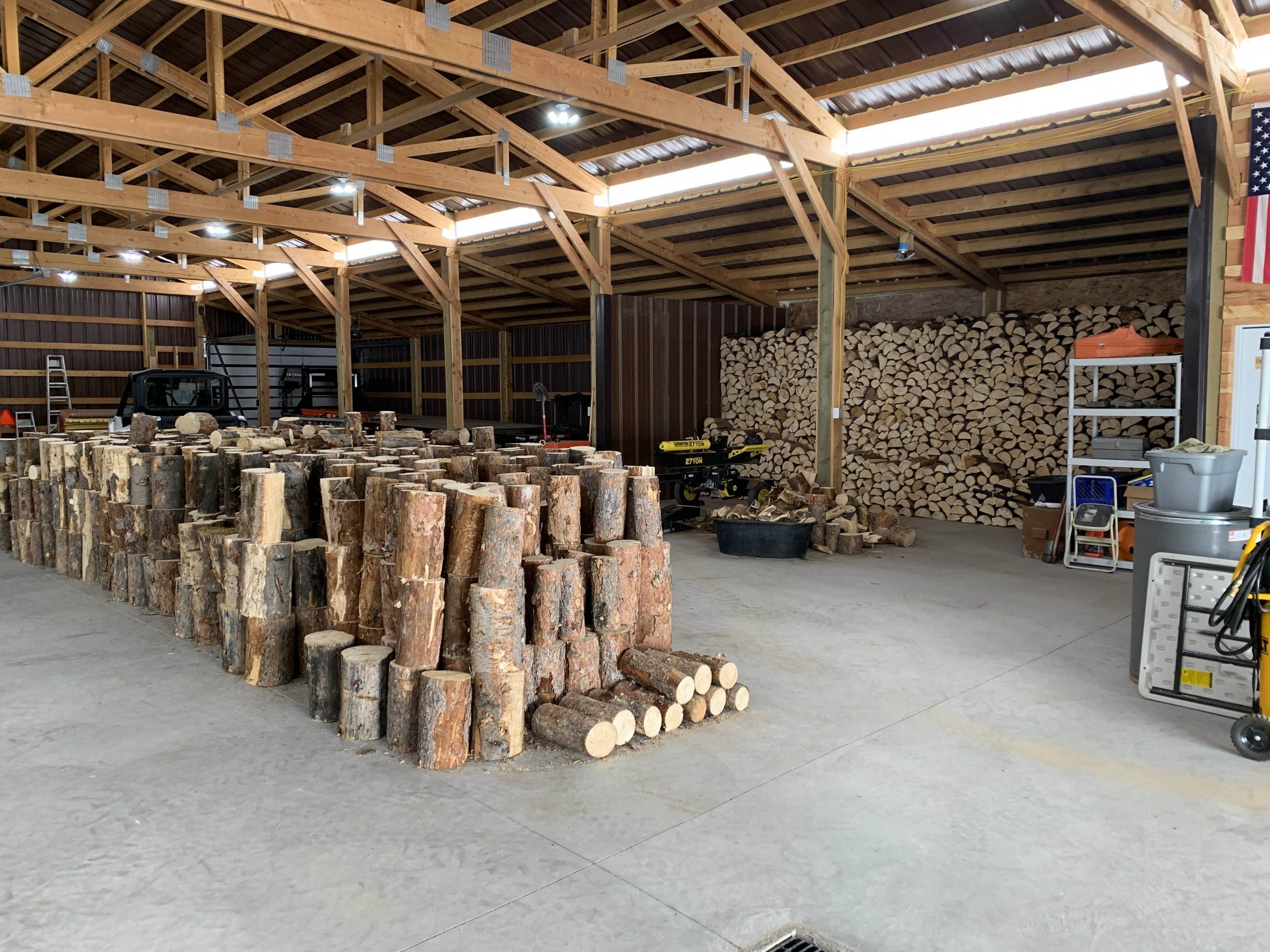 With the splitter horizontal, it's rare that a split piece falls off onto the ground. You split a round and everything is still right there on the deck, to grab and throw into a bin. Yes it kinda sucks to load huge rounds up onto the beam,