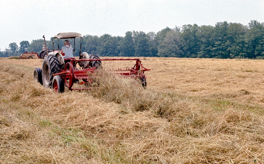More baling today. Finished up square baling at the same place. Today, we welcomed back the Canadian forrest fire. You can see the smokey haze obscuring the view.