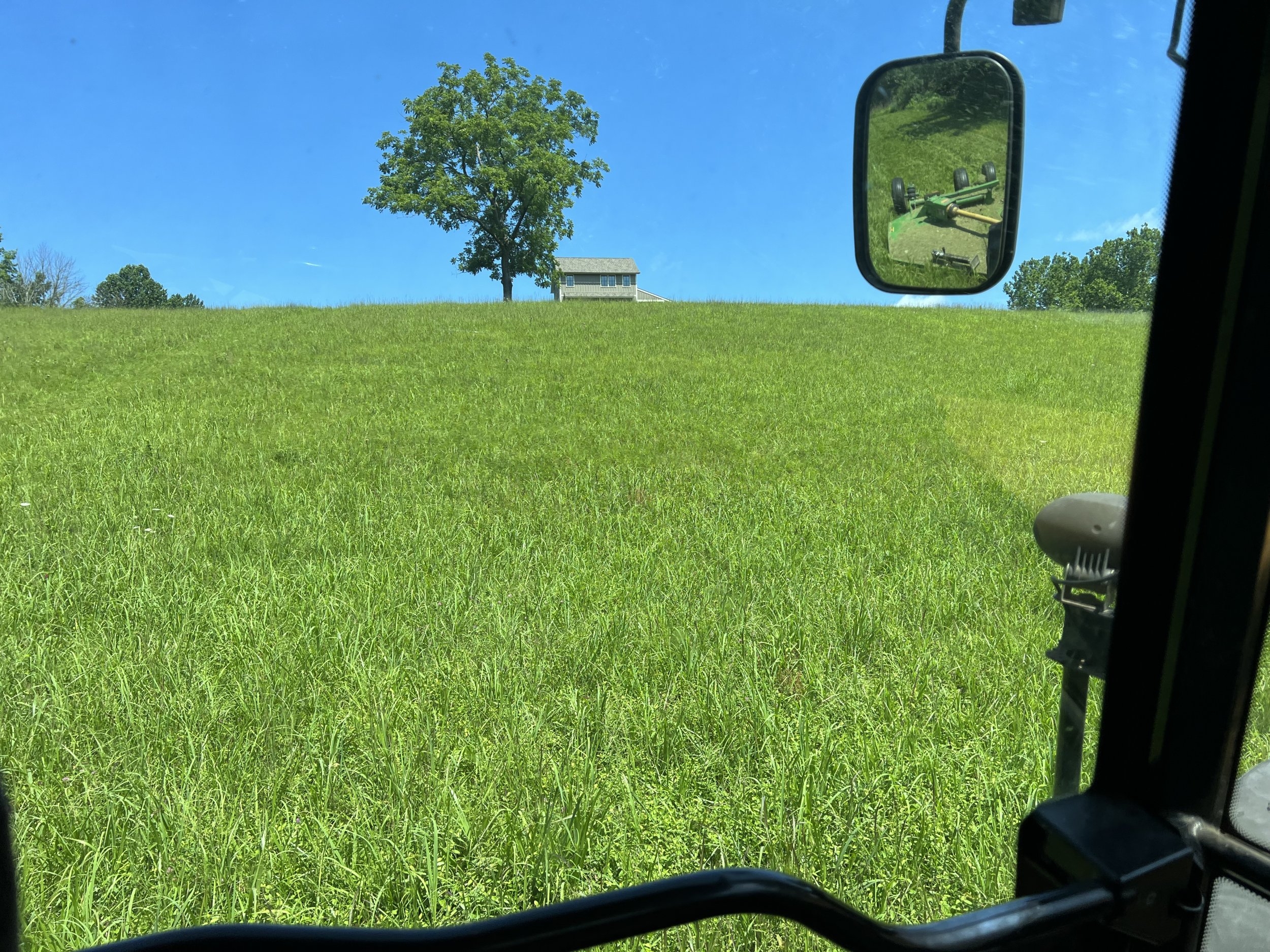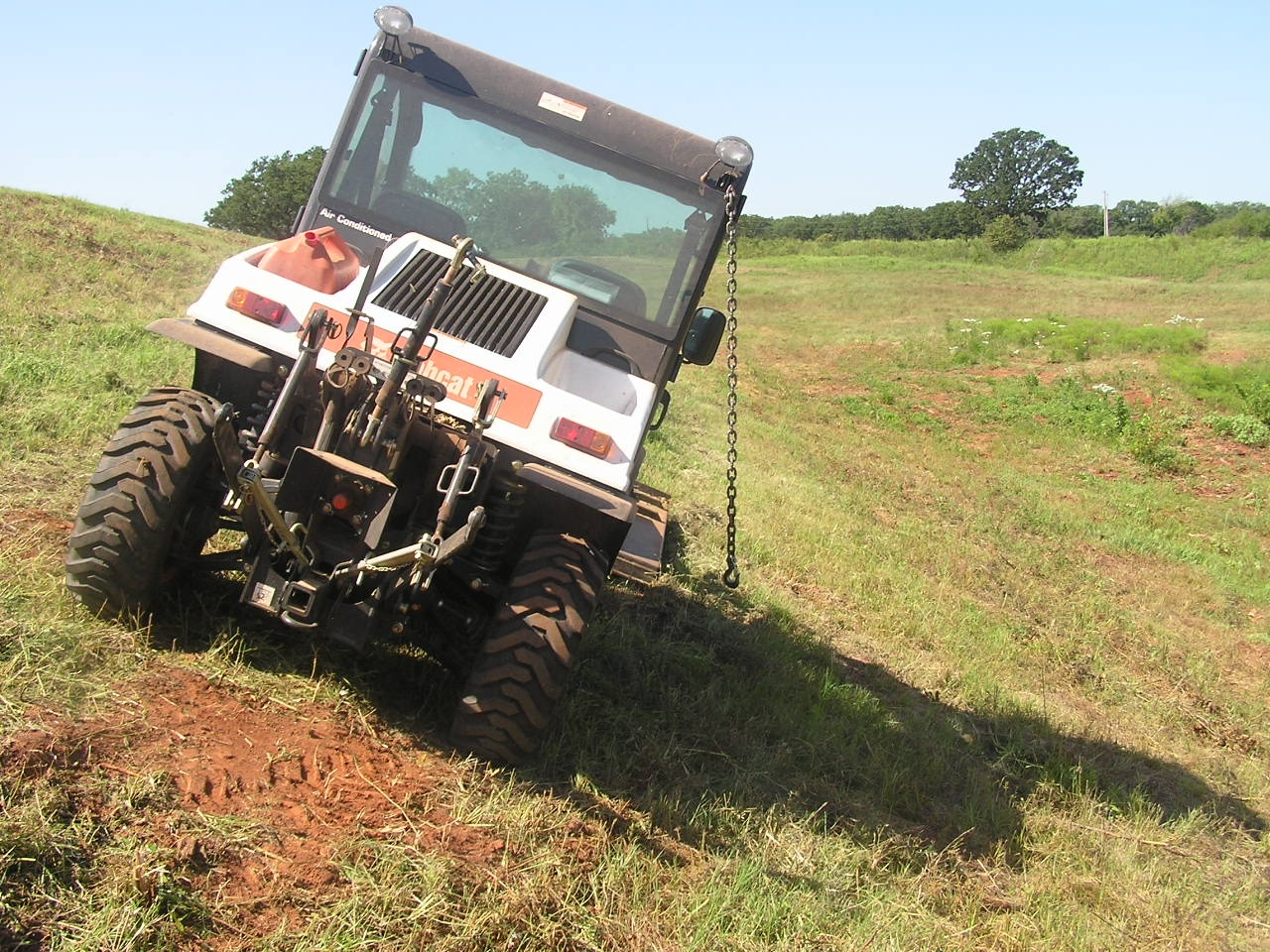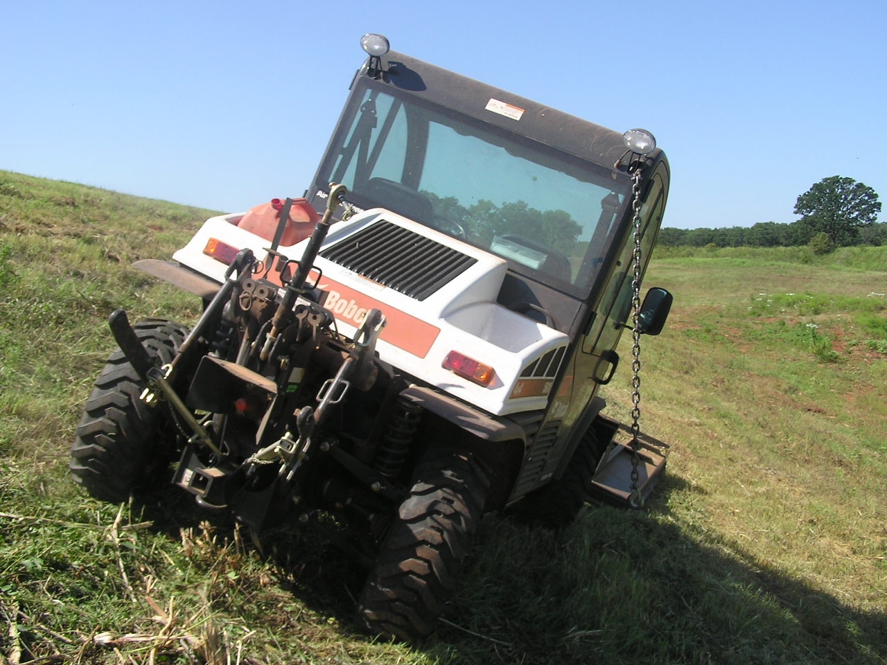 It can be hard to get the visual perspective of just how steep a slope is with pictures. I've tried several times myself and failed. But that does look steep to me. I think I would chicken out and go straight up and straight down the slopes there, even though it usually makes the passes less efficient.Back onto some real steep ground today mowing with the Challenger.