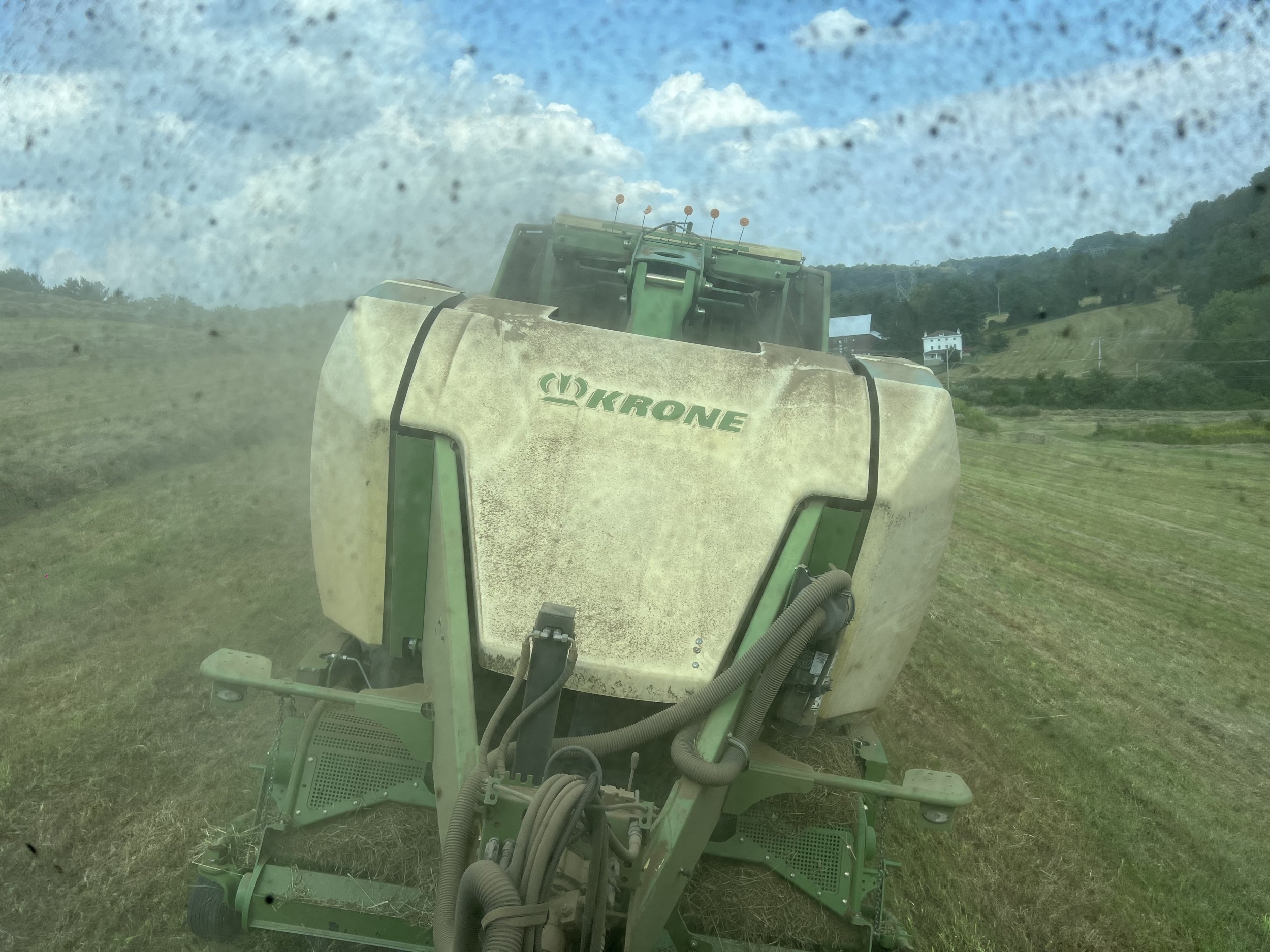 Here’s the view of the Krone baler behind me. Think my rear window is a little dirty? LOL