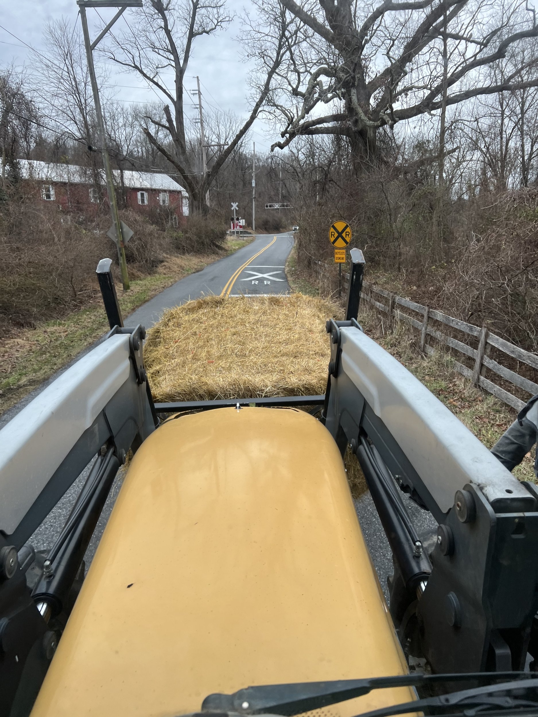 Our back roads in PA are little more than the wagon trails from 300 years ago with about 30 layers of poorly applied blacktop on them.I enjoy seeing the pictures of your backroads with the hay bale in front. I wonder what is scarier to the cars on the road, the giant bale of hay, or the hay spears?