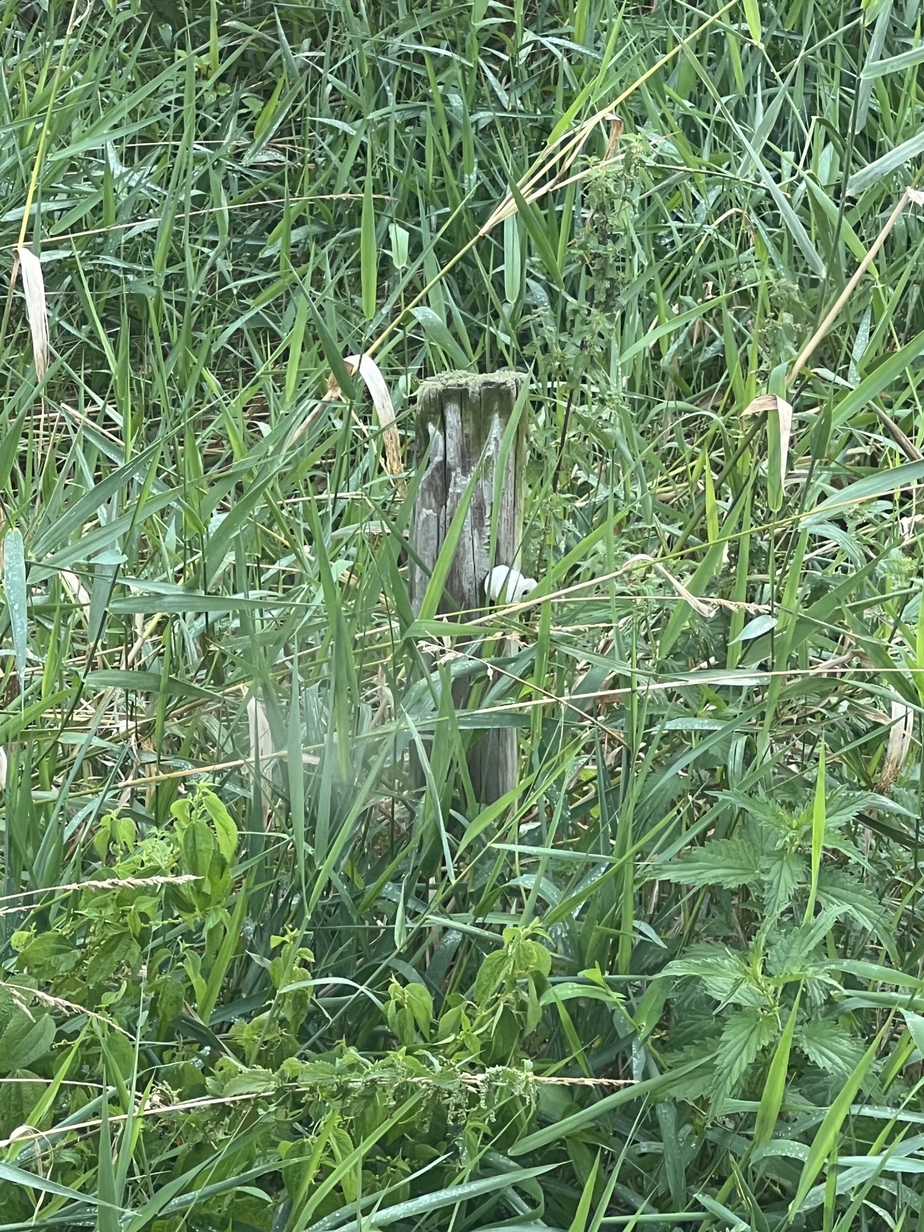 Sometimes even after you’ve mowed a customers property for years, you discover things you’ve never seen there. Here’s a fence post with an insulator from back in the days when people raised cows. I remember when I was a kid and saw cows here.