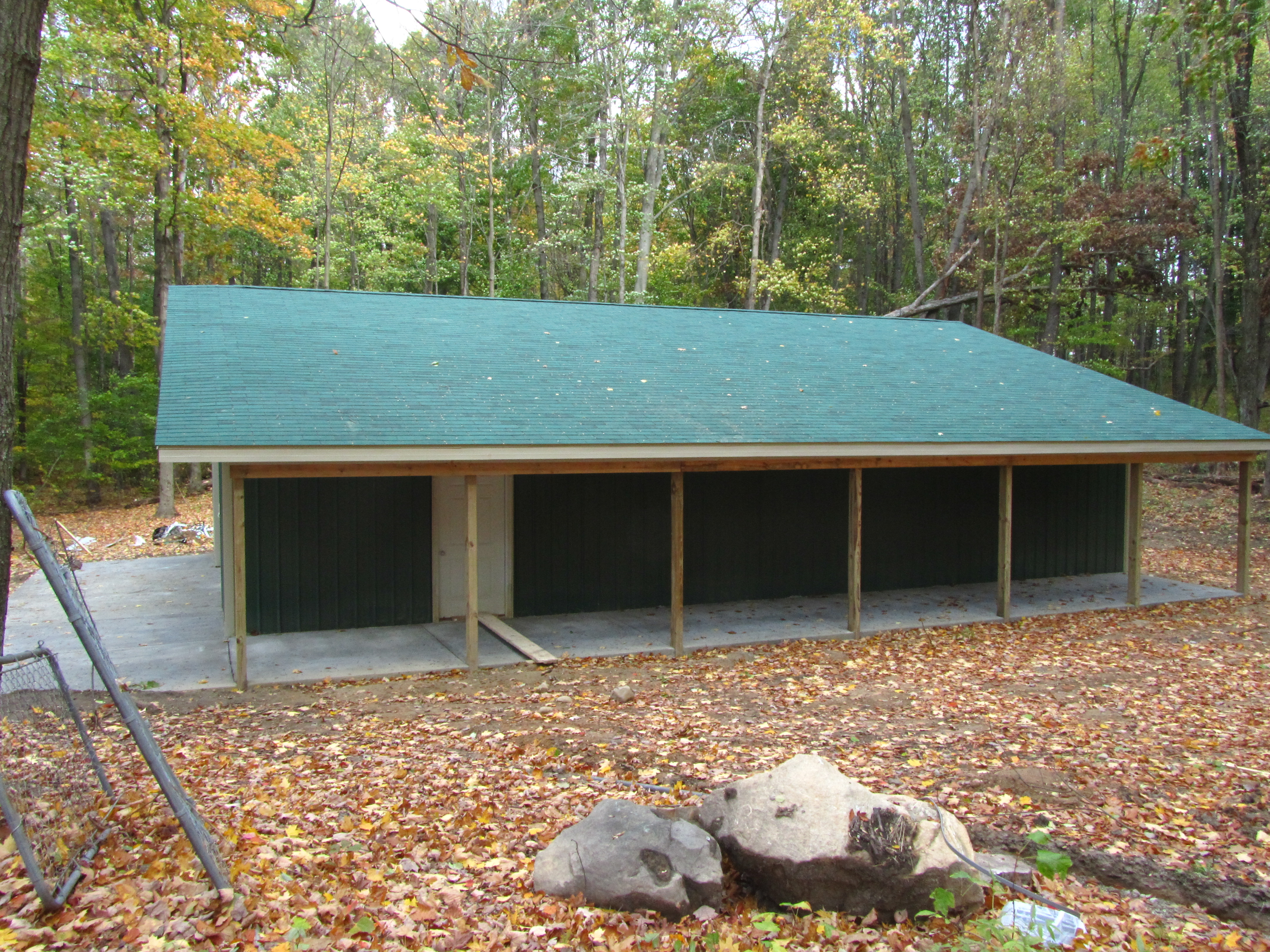Here's mine from a few years ago. The overhang on the side is full of implements now. In order to follow the slope of the roof, It's a little lower than I'd like at the drip edge so I have to lower my ROPS in order to hook up or detach anything.
