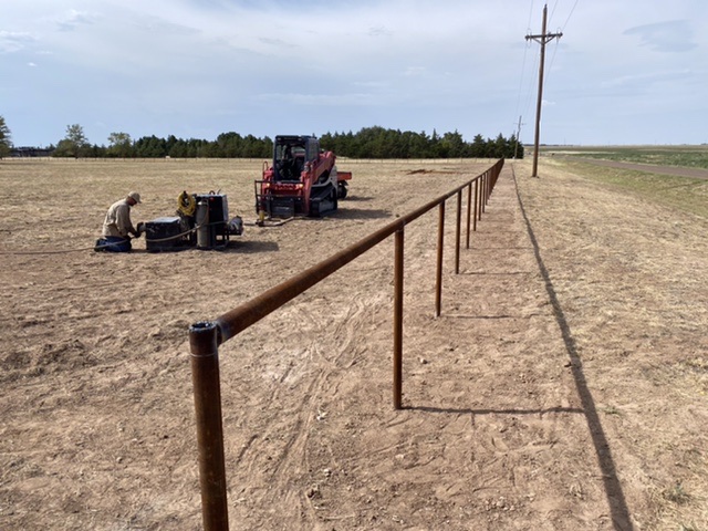 We finished setting all the posts yesterday. Ended up using 8.5 pallets, or 360 80lb bags in three days. Today we start welding.