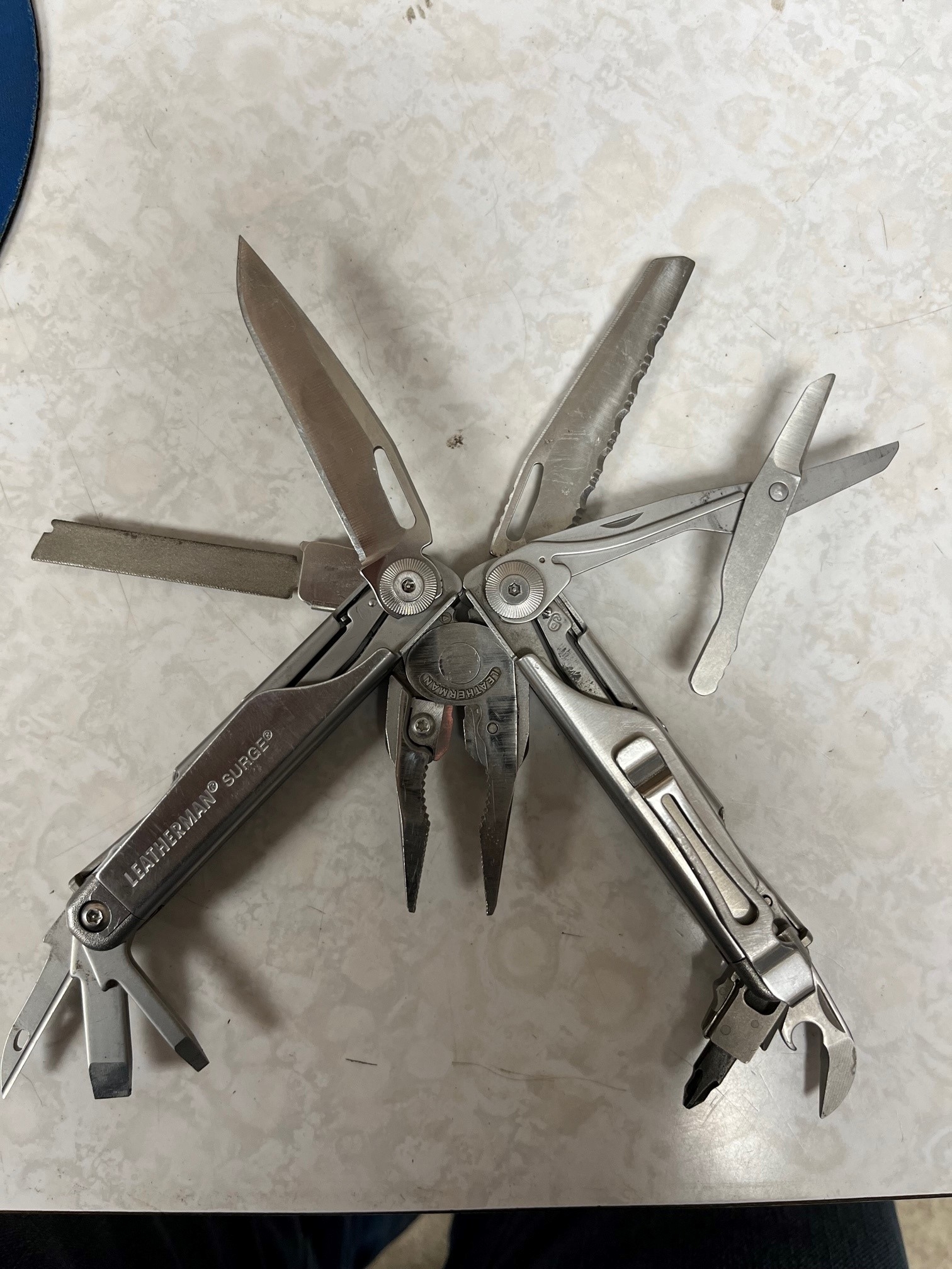 My leatherman Charge TTI had a habit of destroying my pants pockets. Picked up a Wingman with a pocket clip. Less returns than the surge but lighter & less pocket destroying. I wear the Charge whenever I have cargo pants & the Wingman with normal pockets.Leatherman Surge. Damn near shower with it.