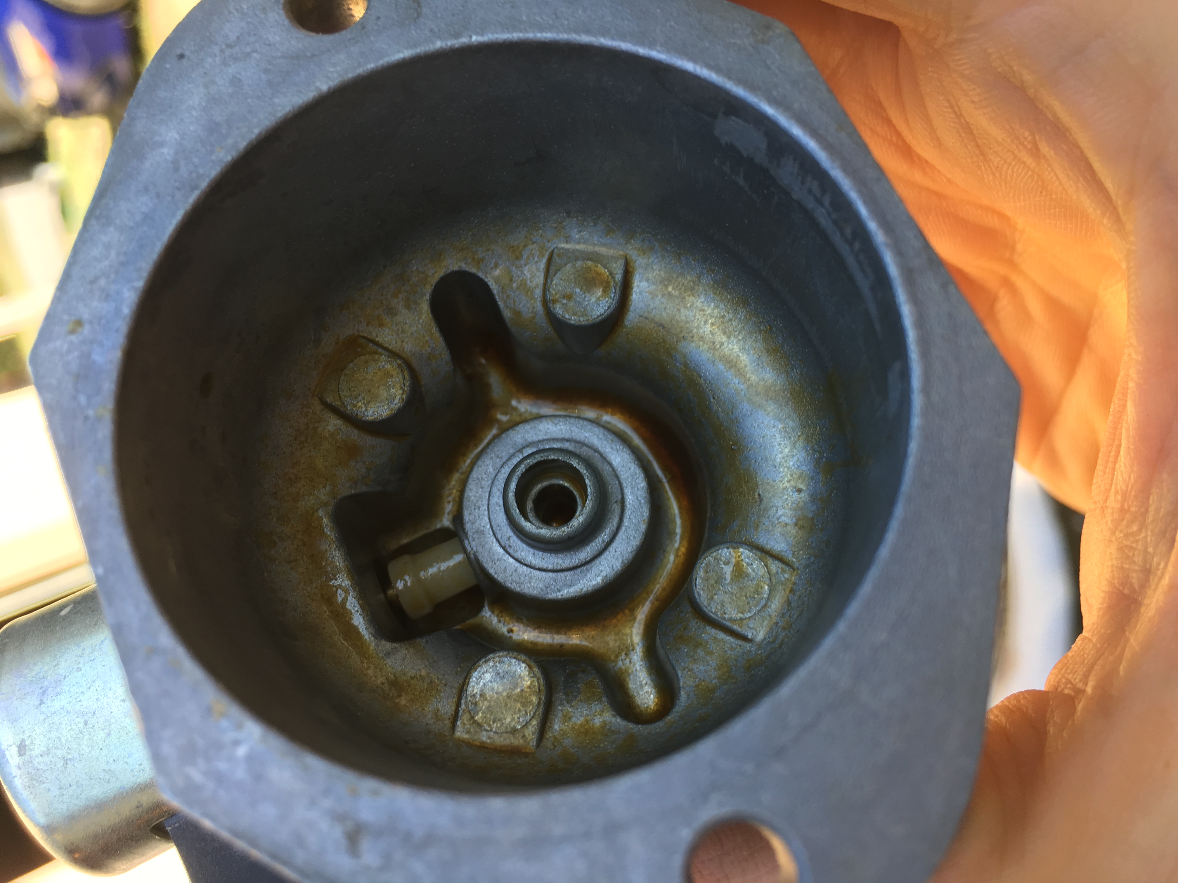 Not sure if the motor oil type residue in the float bowl is cause for concern? (See pic). There's definitely been at least a little oil making its way into the air intake through the rubber hose that goes to the right cylinder head.