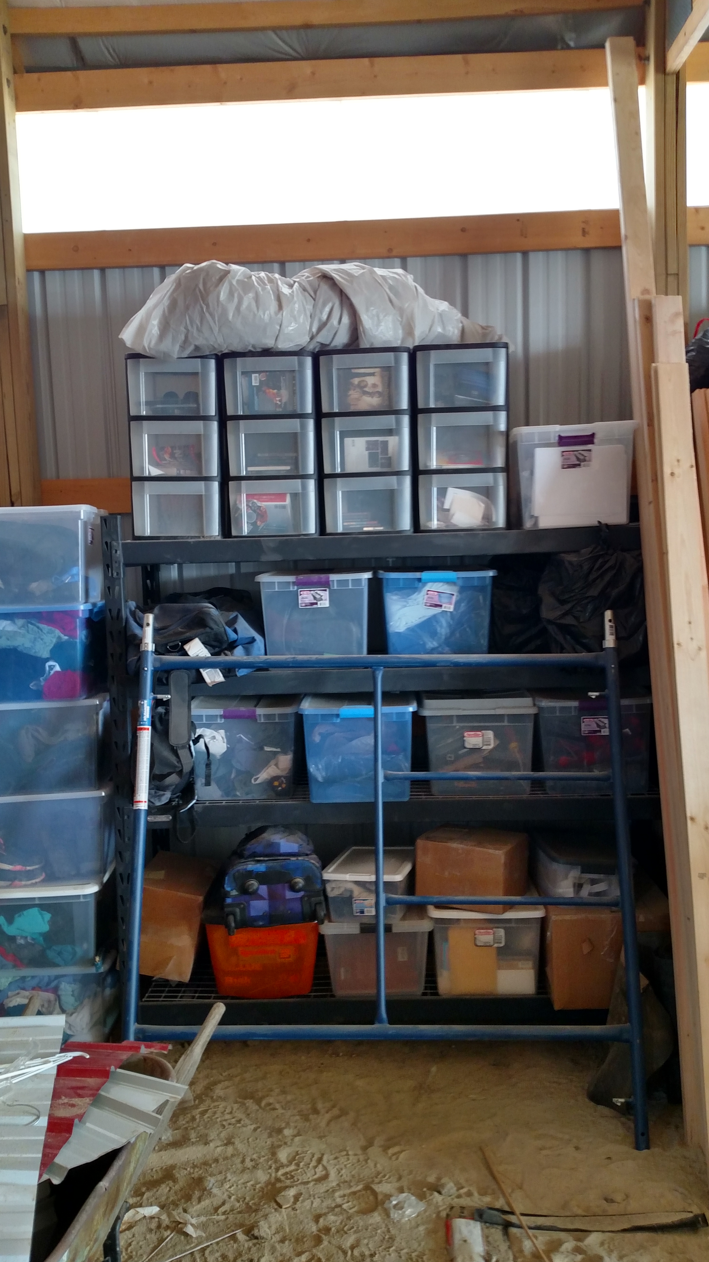 another thing i've been up to is organizing the barn. originally i had almost everything laid out horizontally (ie, on the dirt floor). recently i've been working on going vertical.