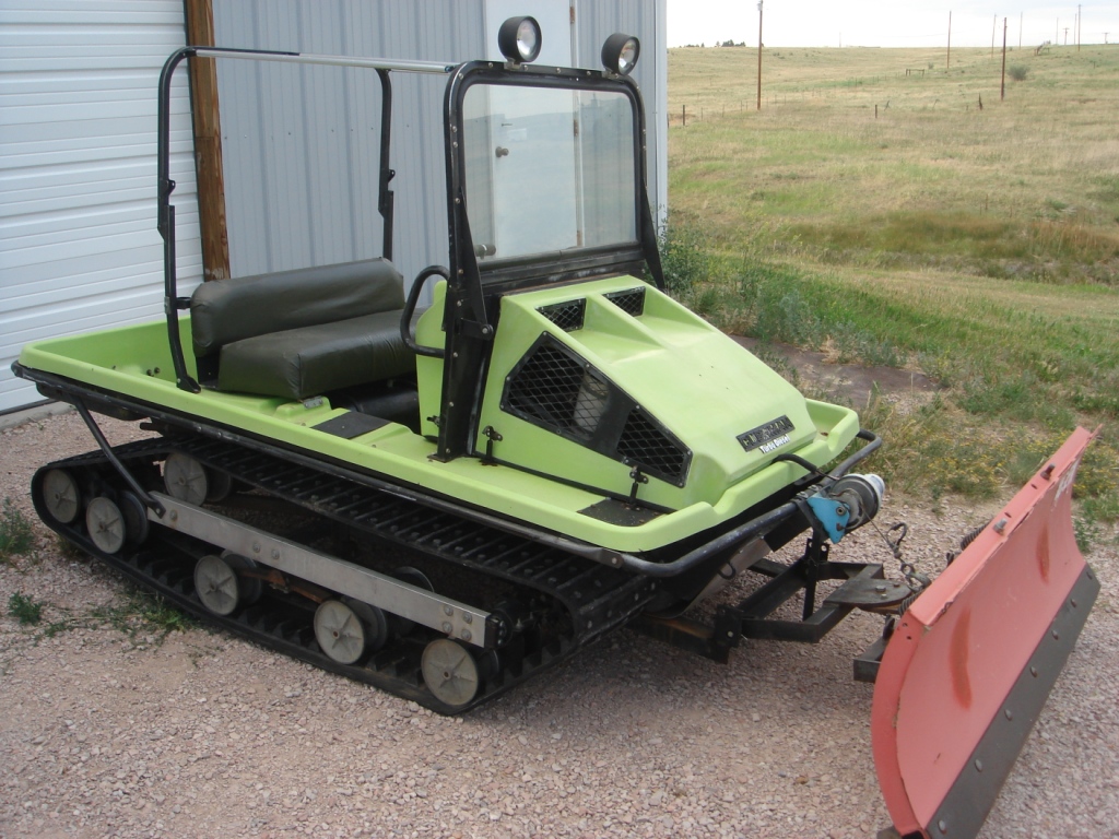 I once worked on the north west of Australia and we had one of these (without snow blade) for accessing our remote sites after cyclones. They are great fun, especially for chasing sheep! Ours had a Cortina 4 cylinder motor with seating for three on the only seat. The gearbox and brake (steering) levers were in the middle and it was not difficult to spin it around.