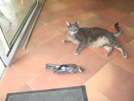 The next week I'm in the shower and my husband comes in and says. Now the cat caught a bird. He did that before but it was just a baby. Ww was I surprised to see that big bird the cat killed. He always brings us his conquests and we praise him, but i am still mad it him that he let the rat get away.