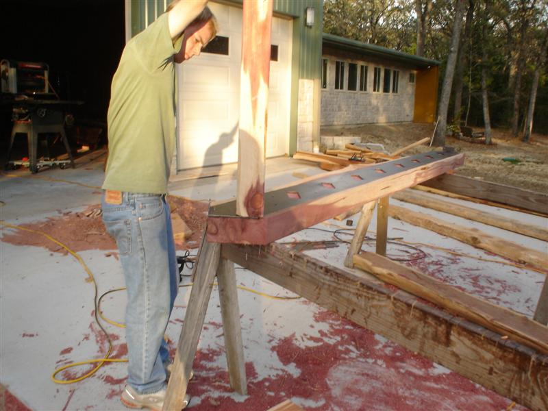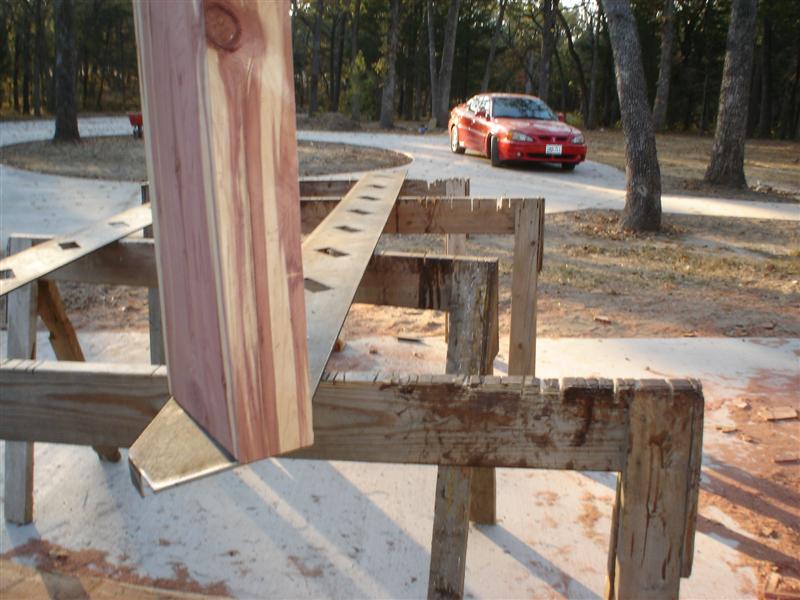 Since then we've stretched and tied in about eleven hundred feet of eight feet high fence. The posts and braces were done by others. We stretched and tied in one strand of barbwire top and bottom. Posts were set on fourteen foot centers and the pulling brace was in the middle.