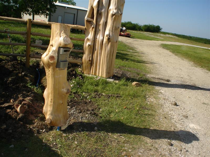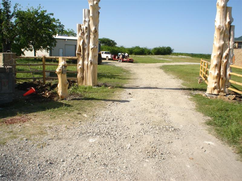 It is 60' from the front fence to the 16' cattle guard. Below are some pictures of the front entrance now. Our heads are spinning on a design to grid out. (Any artist out there?)
