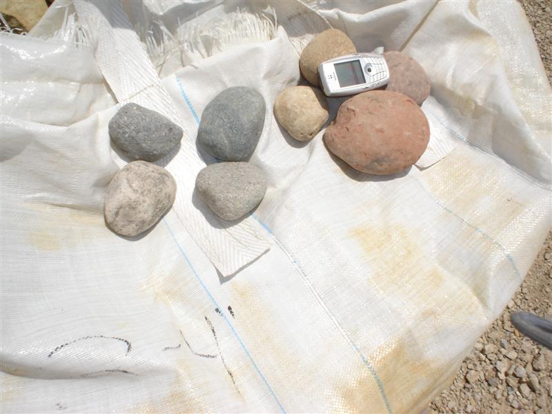 The dates and time are working against us. Is this going to happen next weekend (10-11) or the weekend after? The reason I'm asking is that today our youngest is getting married. Next weekend is Mother's Day on Sunday. I can probably get down and take some pictures of the rocks tomorrow, but they are pretty spread out in my neighbor's corral. I'll try to scratch around and get a few piled up so I can get some photos. When I take the photos, I'll also take some measurements and give you good info on the size of the rocks.