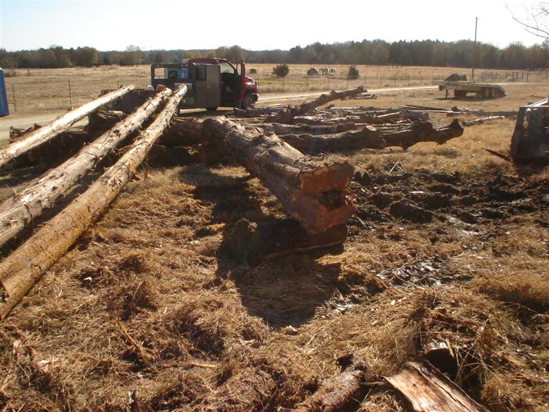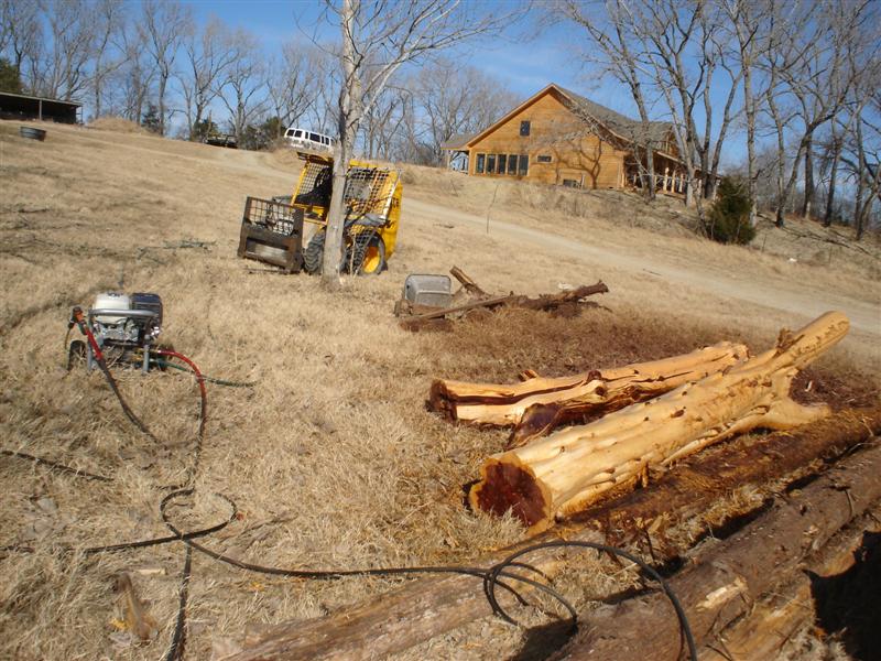 Yesterday was clean off the bark off the logs day. I got a late start but ended up doing good until the last thing. Wet, old, tired, and in mud I slipped and broke my middle finger of my left hand. Not a dangling break, just a fracture that hurts like the devil.