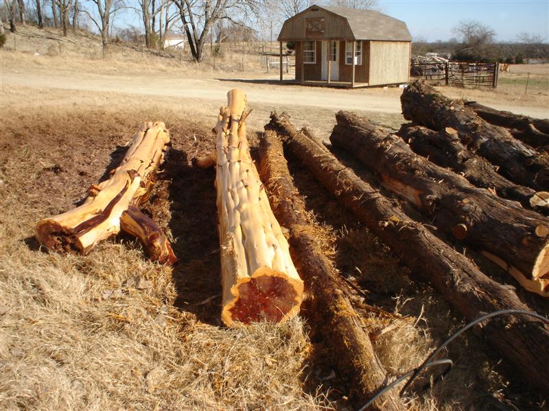 I too, am anxiously waiting for the front gate project. My FIL said I could cut any cedars on his place on the other side of town. I need to go take a mental inventory. I'm not sure I'd want something overhead, but I've seen folks cut the cedar into 1" thick flats and overlap or nail close together using wood instead of barb wire or stone to create an entryway. I've also seen this used as siding. Not sure what preservatives or conditioners were used to keep looking fresh cut.