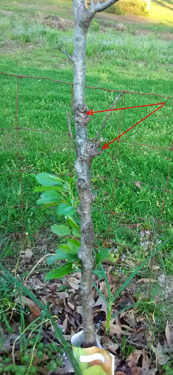 Bought about a dozen fruit trees in late '18. Mix of apple and pear varieties. All grew fine last Summer. All are leafing out fine so far this year, except one of the Pears. It started to come out OK, but then stopped. I'm not seeing any new growth on the upper branches, now about 8' tall. Looks like the nubs of leaves that had started are browning. If I nick a branch with my thumbnail, the pulp is nice and green. There IS new vigorous growth from the trunk about 12-18" above ground, but below all of the branches. Those new shoots are 3-4 inches long now.