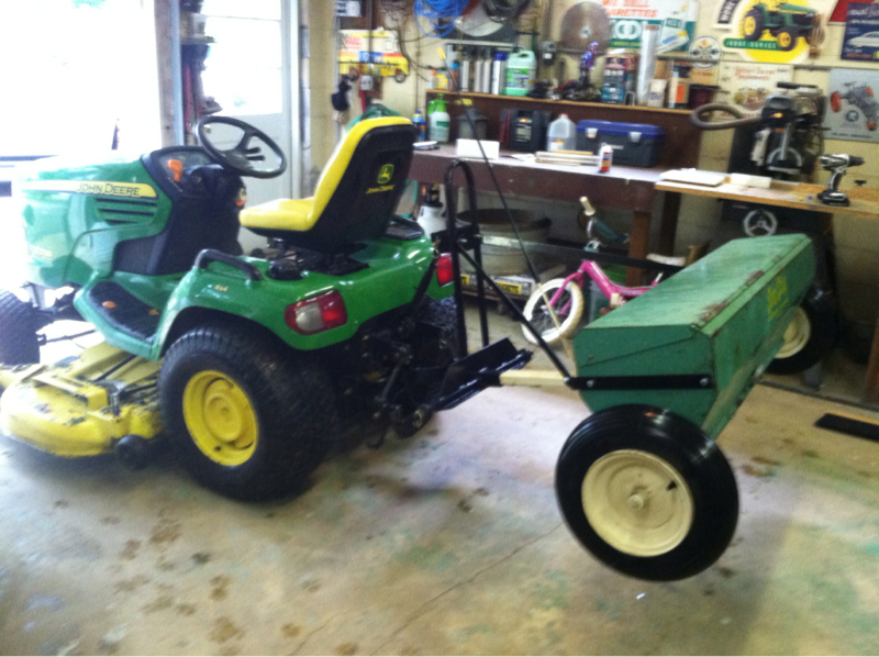 I attached a few photos. I plan on sand blasting the unit and paint it JD green ( which is the color the newer spreaders come in). This is the Garber link. http://garberseeder.com/spreaders.html