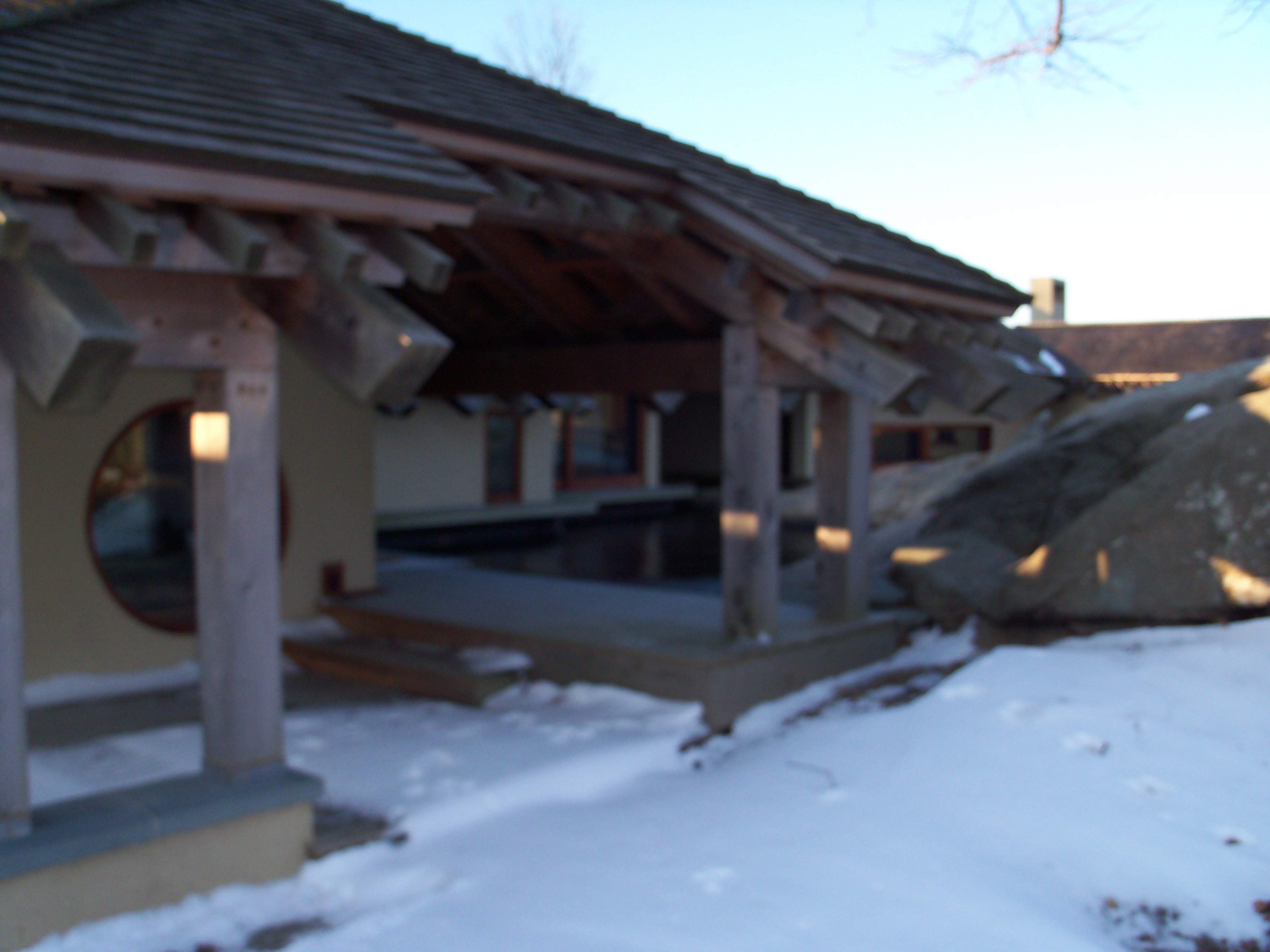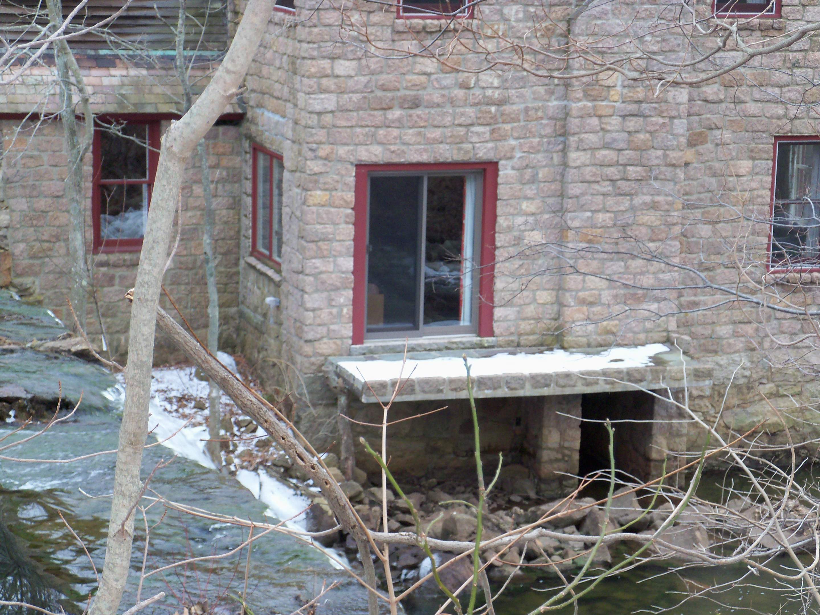 Thanks. I bet it would be peaceful to hear the water. Now that I see that end of the building, I wonder if somewhere along the line somebody re-faced it with veneer stone? Don't see any lintels above the slider and windows.