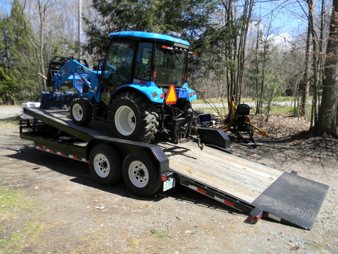A couple manufacturers make quick tilt trailers like the PJ TH series, which are power tilt with the pivot in front of the wheels. They seem pretty light for the capacity, about the weight of a ramp trailer, but have a listed 10k GWR. A 20' TH would get me just enough carrying capacity for my Branson with the backhoe mounted, which is about 7300 lbs. I don't plan on carrying anything heavier than that, and not carrying that often. I'm sure there will be more tractors and farm equipment in my future but I don't see getting anything over 7000 lbs.