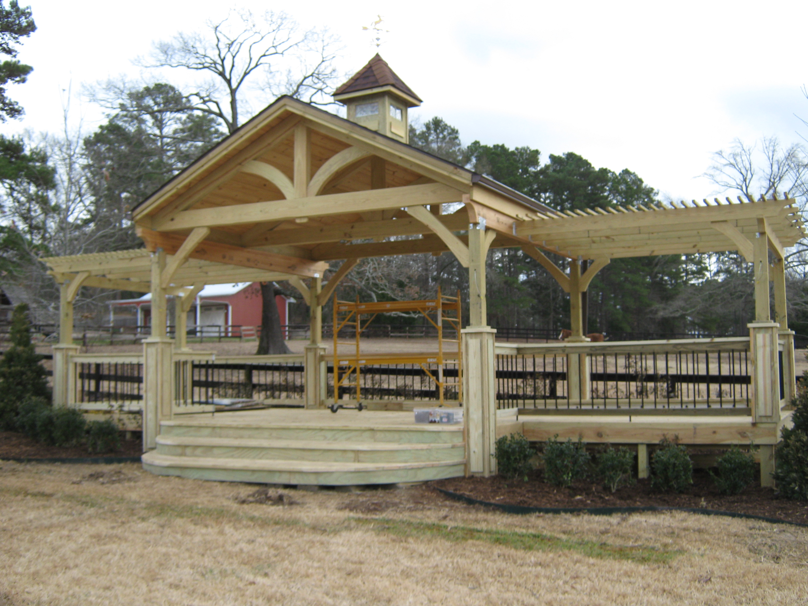 This project should be interesting in that we are doing things a bit backwards. Typically you would stand the timber frame then enclose it with sips or traditional framing. Since we are remodeling an existing building we are going to timber frame an already enclosed envelope. Another part of our remodel will be building an outdoor wedding area for wedding ceremonies. Construction of our outdoor area has already begun. Pics and updates to come shortly to bring everyone up to speed. Our remodel of our current facility and transformation into a timber frame venue will start after our last scheduled wedding reception on November 11th.