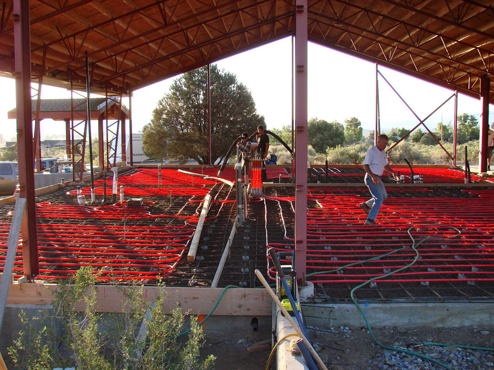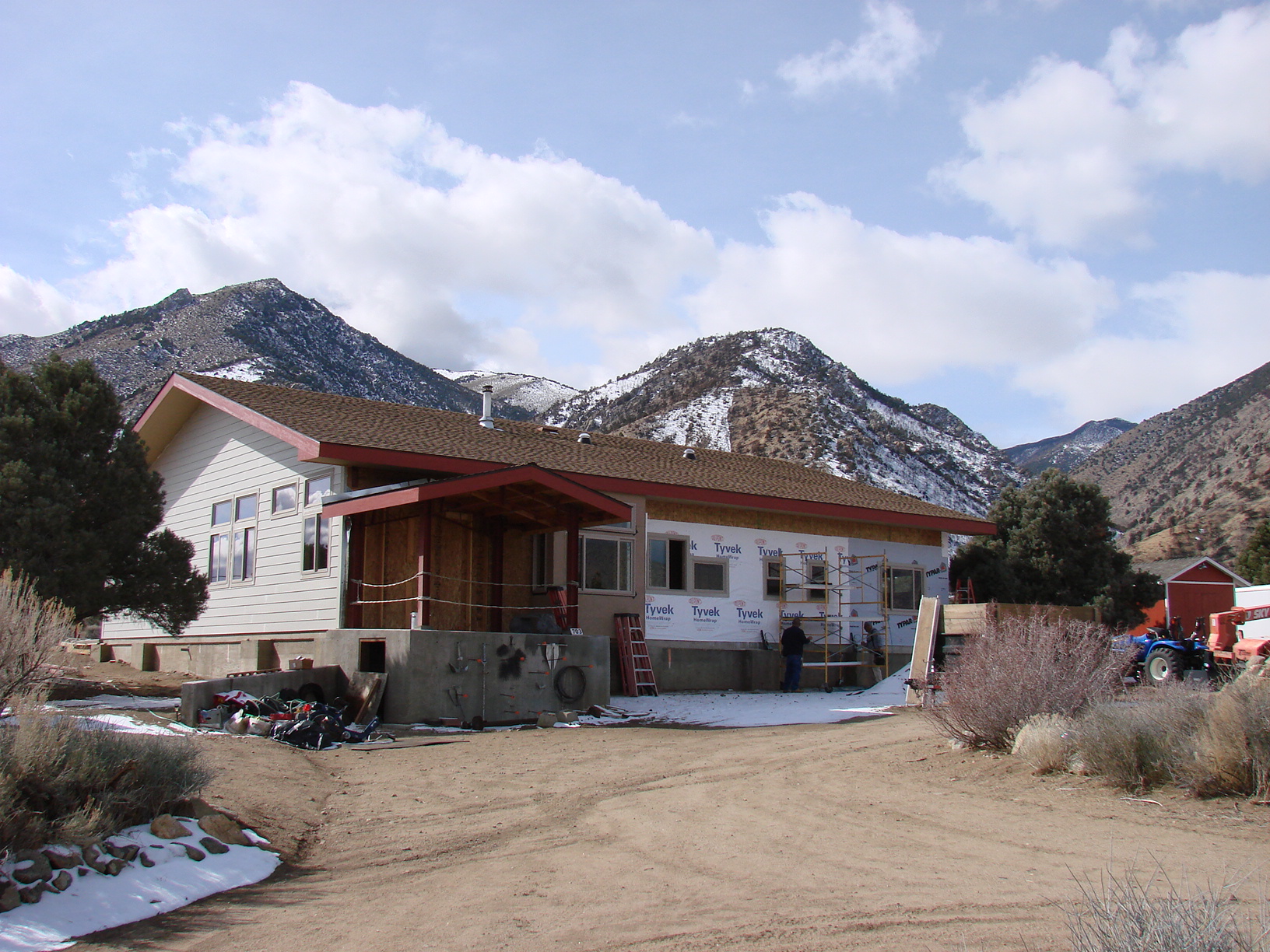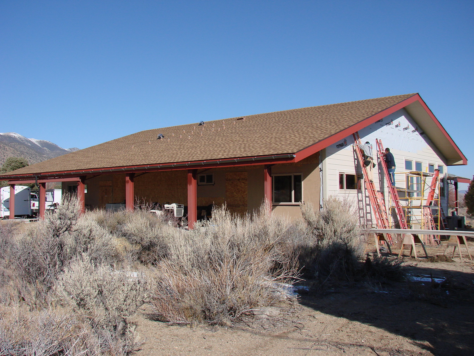 The roof was originally designed to be metal directly on the purlins, but I put two layers of 7/16" OSB and then a composition roof. This allows a very tight structure and a way to insulate with R38. It also allowed the installation of bolted down solar brackets and foot traffic.