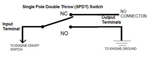 A small engine is usually an open ignition circuit and shorted out to ground when it's shut off killing the spark, opposite of the spring switch............Mike