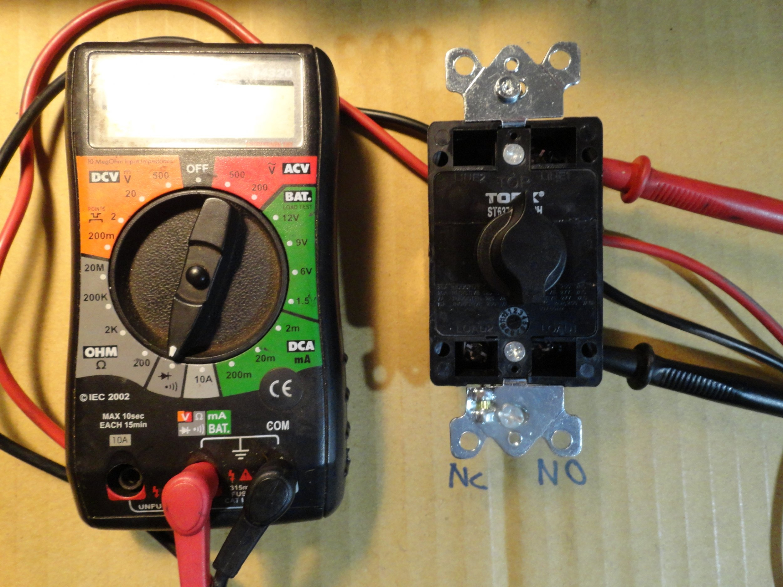 Set your meter to the ohms position and to the lowest ohm number. On your meter, that would be the 200 position. After switching the meter to the 200 ohm position, short your meter leads together to see what kind of reading you would expect when the switch makes the connection during your test.