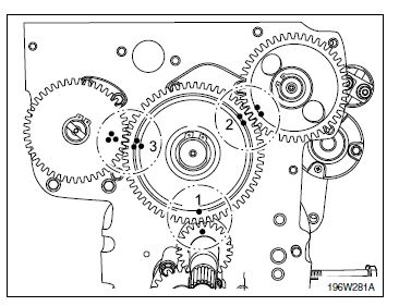 1 for engine "TDC" & the other for "Inj. Pump".. Both lines about a 1/2" apart..{probably 1 tooth}