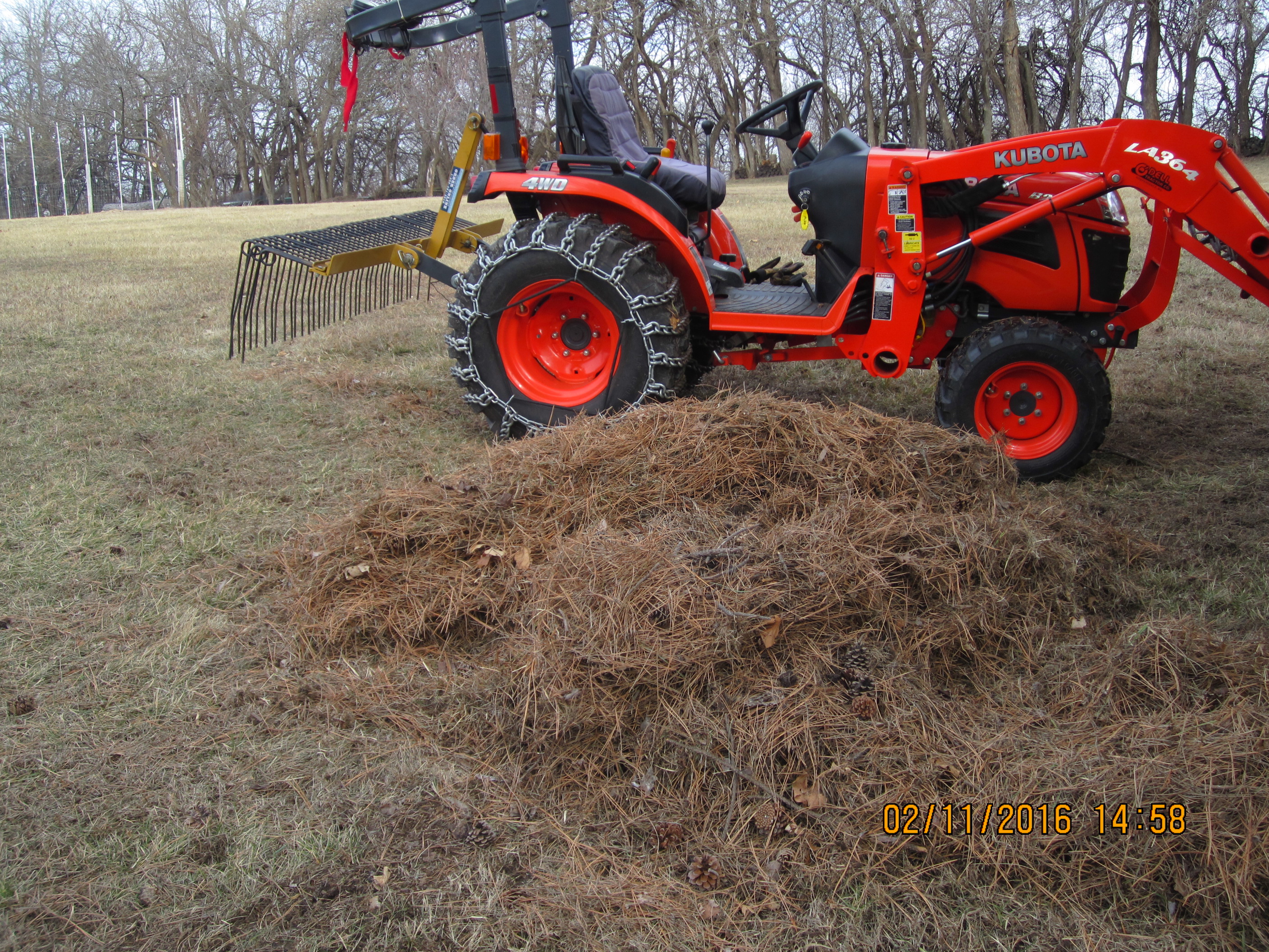 I tried using my landscape rake and I知 already sorry as it is scalping what I jokingly call my lawn.