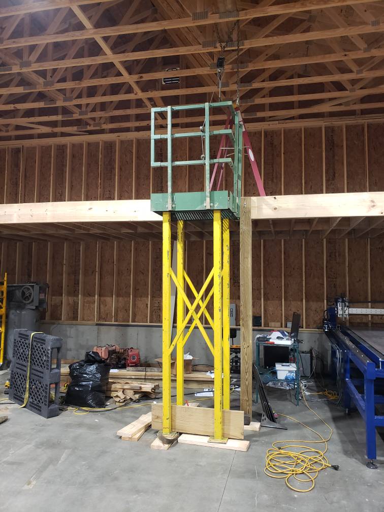 No forklift but always on the lookout for one, until then I might build a swinging i-beam crain.Will fork-lift access to the loft be in front of the p-table or in the other corner by the e-panel? I do wonder where the Haas will sit.