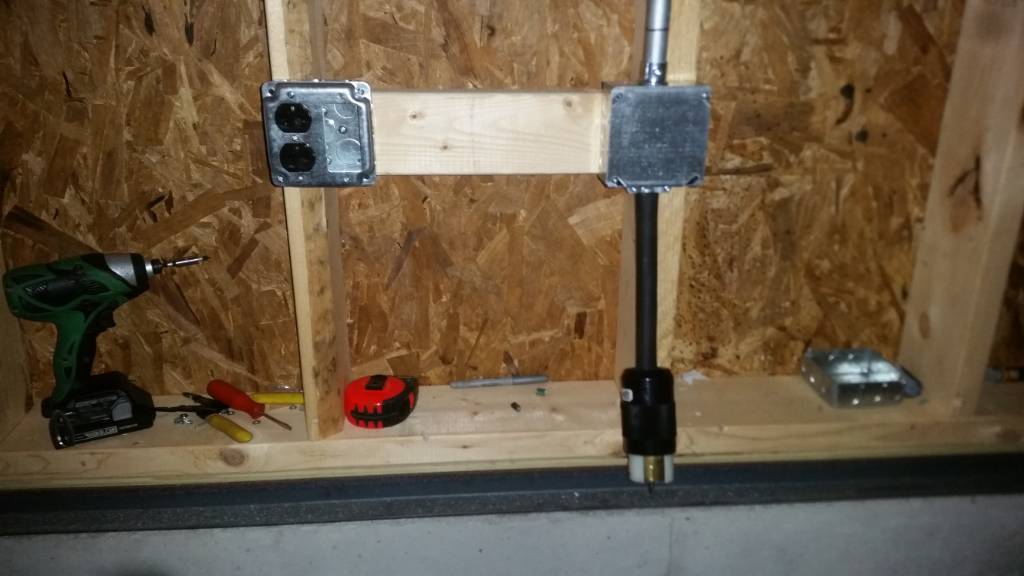 Lot more conduit run, all the electrical boxes installed. I decided to go with 50A twist locks for all the 208v stuff, used a small piece of SOOW to connect them to the boxes, figured I less of a chance of breaking off a connector that way.