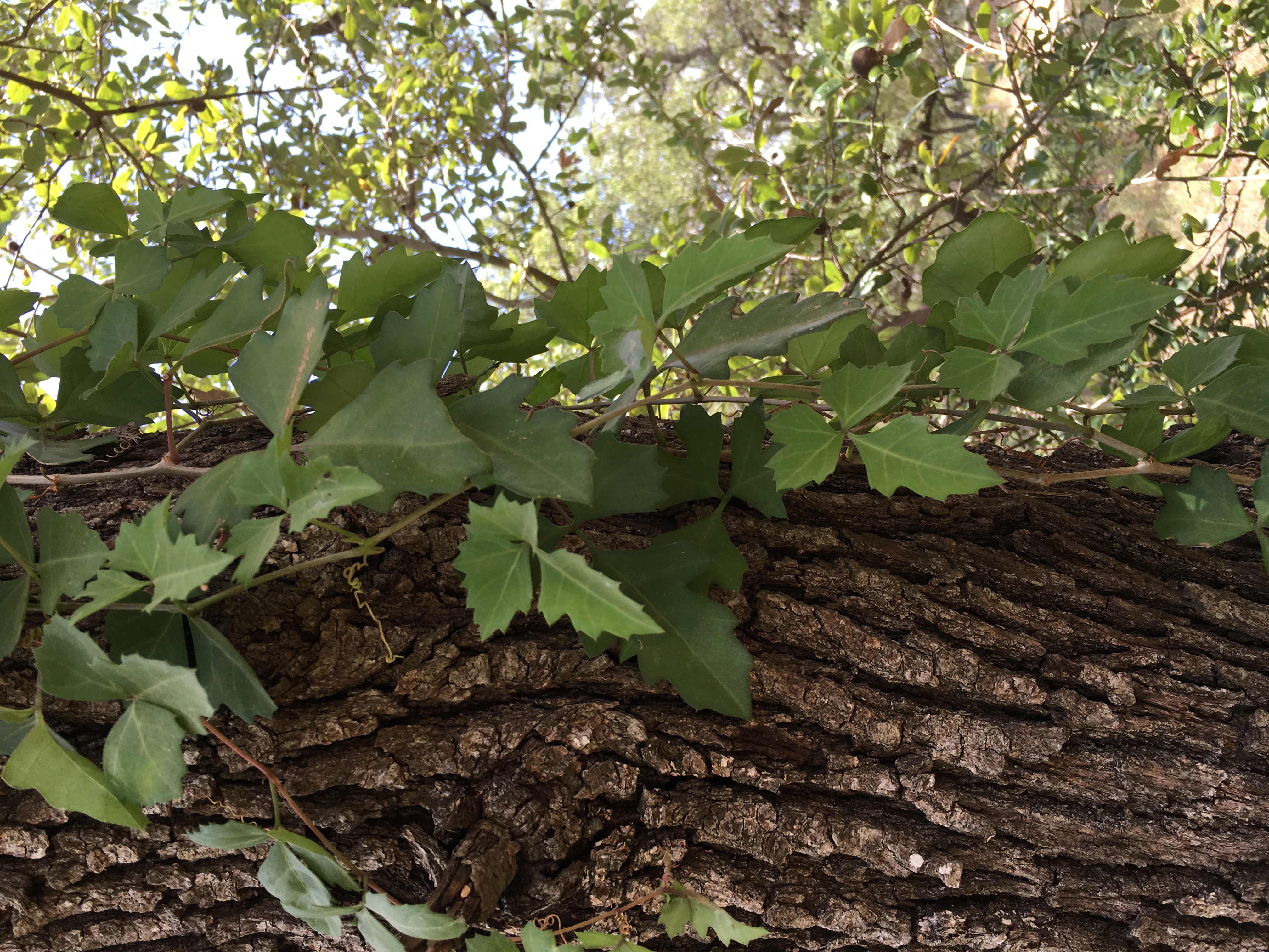 Of the choices given, the only one I'm familiar with is Poison Oak. I'm going with it might, even probably, is Poison Oak. Around here it takes many forms, small bush, tall bush (up to 15') climbing vine (I've seen it 30' up in oak and pine trees), and creeping vine along the ground. It has various leaf forms (and color) depending on the type and age of the leaves. It's a real sneaky bugger. Almost impossible to spot after the leaves fall. In the spring it's sometimes hard to tell he young Poison Oak from young blackberries. That said, Poison Oak leaves are *generally* shiny, and the twisty tendrils look more like wild grape. Grape and Poison Oak can be hard to tell apart at times, also. I think I would treat it as Poison Oak until proved otherwise. That is, I would treat it with Round-Up. And no burning it. let it rot in place. I have been unable to find out how long the oils are active in a compost pile, but I know from experience that it's over a year. (I react rather violently, so I tend to be cautious around the stuff.) When living in the SF Bay Area I could swim in it and had no reaction. When I moved to the Foothills I gradually reacted worse and worse. to the point where once hospitalization was considered. I think the change started when I first started as a FF/PM up here, and responded to a vehicle accident where the car rolled through a large thicket of the stuff. Since I didn't react to it (I thought!), I charged right down to the car to render aid, coming out with a number of scratches from broken Poison Oak branches. I got a small amount of rash that time and it just got worse and worse with each exposure.Being a Firefighter, I was *very* concerned about smoke from burning Poison Oak, But the ambulance (and the water tender I operated when responding off-duty) generally got to park upwind of the fires, and I guess I was lucky.