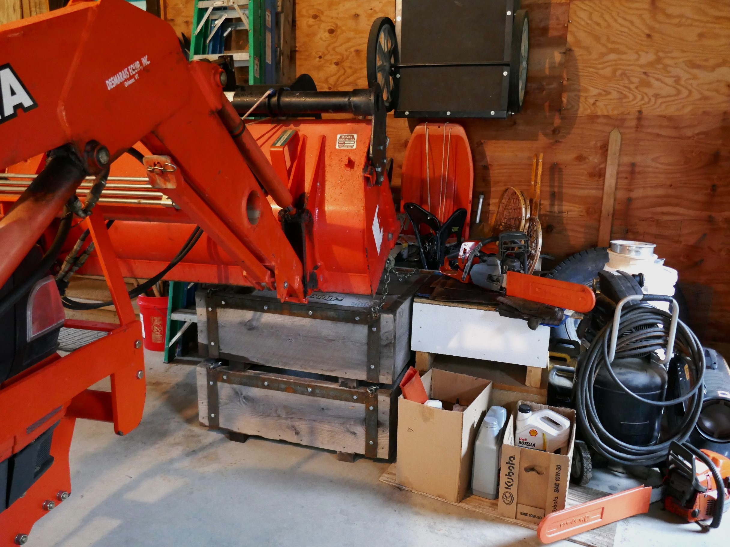 I like the idea of the wooden boxes. Beats what I'm doing with just bags of sand stacked on a pallet. They always seem to fall off the pallet into the truck bed over the winter, and have to be hand stacked back on the pallet again.Not green like that here yet - or ever I should say.