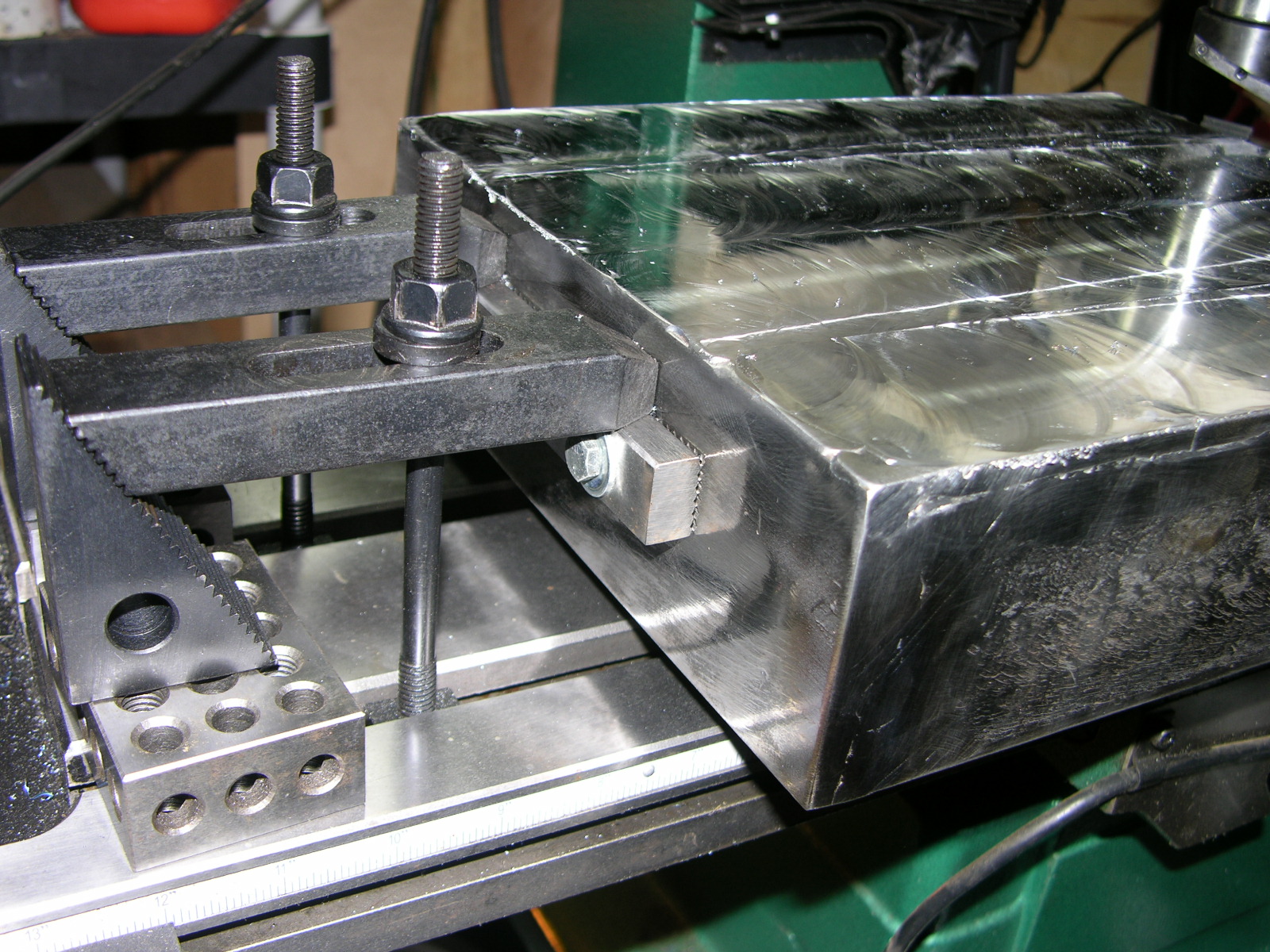 Meantime, here's a few showing the basic parts - 12" piece of 10" channel, added some pieces of FB to get more pull from the mag drill's magnets, then flattened the surface on the mill.