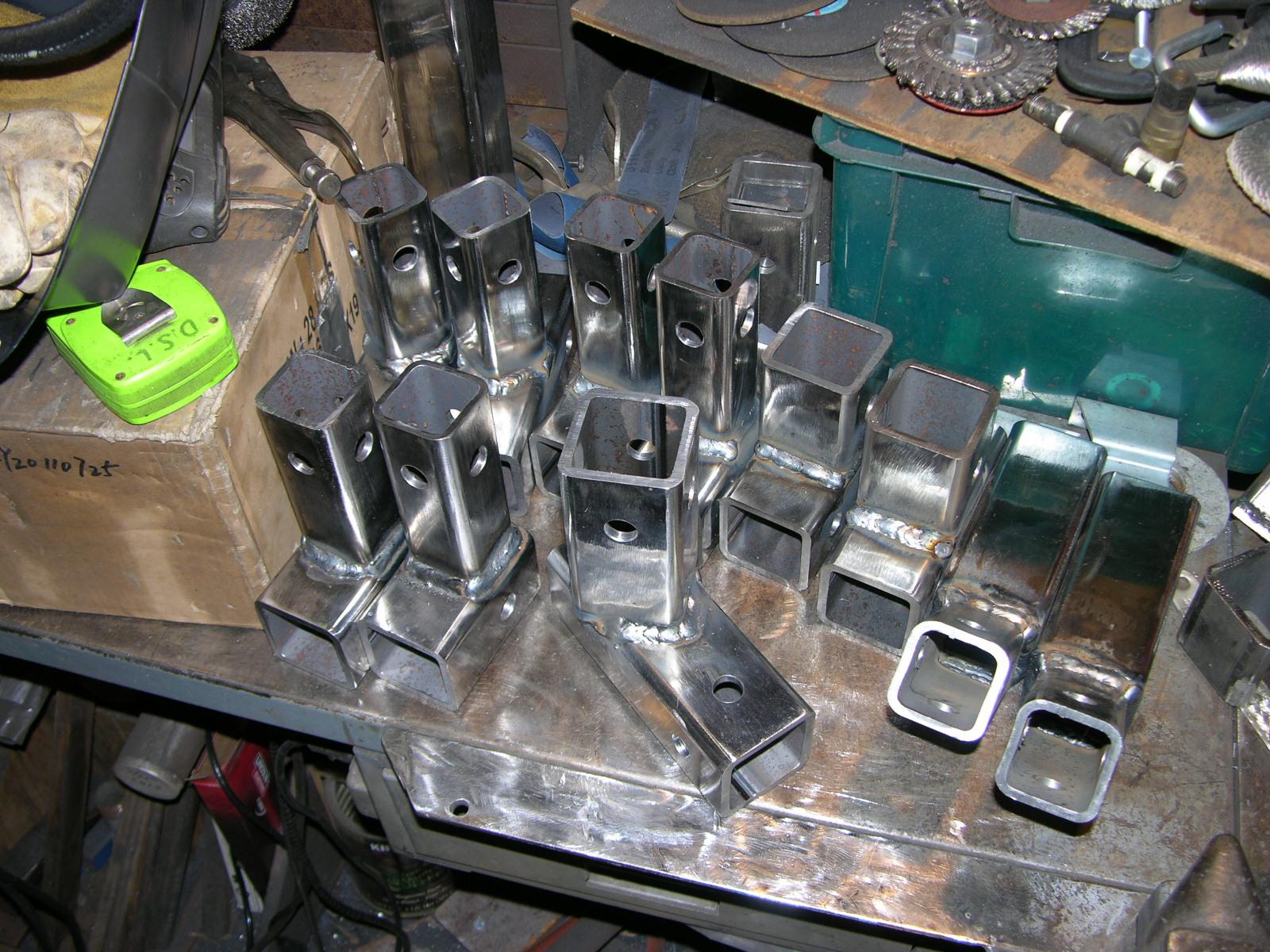 Here's some of the stuff I do with the "MDVT", I call 'em my "tinker toys" - all 2" receiver material, 1/4" wall - I buy the 2.53" tubing for females and standard 1/4" wall 2" tube for inserts. I probably have a few more than the pics show, whenever I can't come up with a combo of pieces that'll do what I need, out comes the saw/drill/welder :licking: