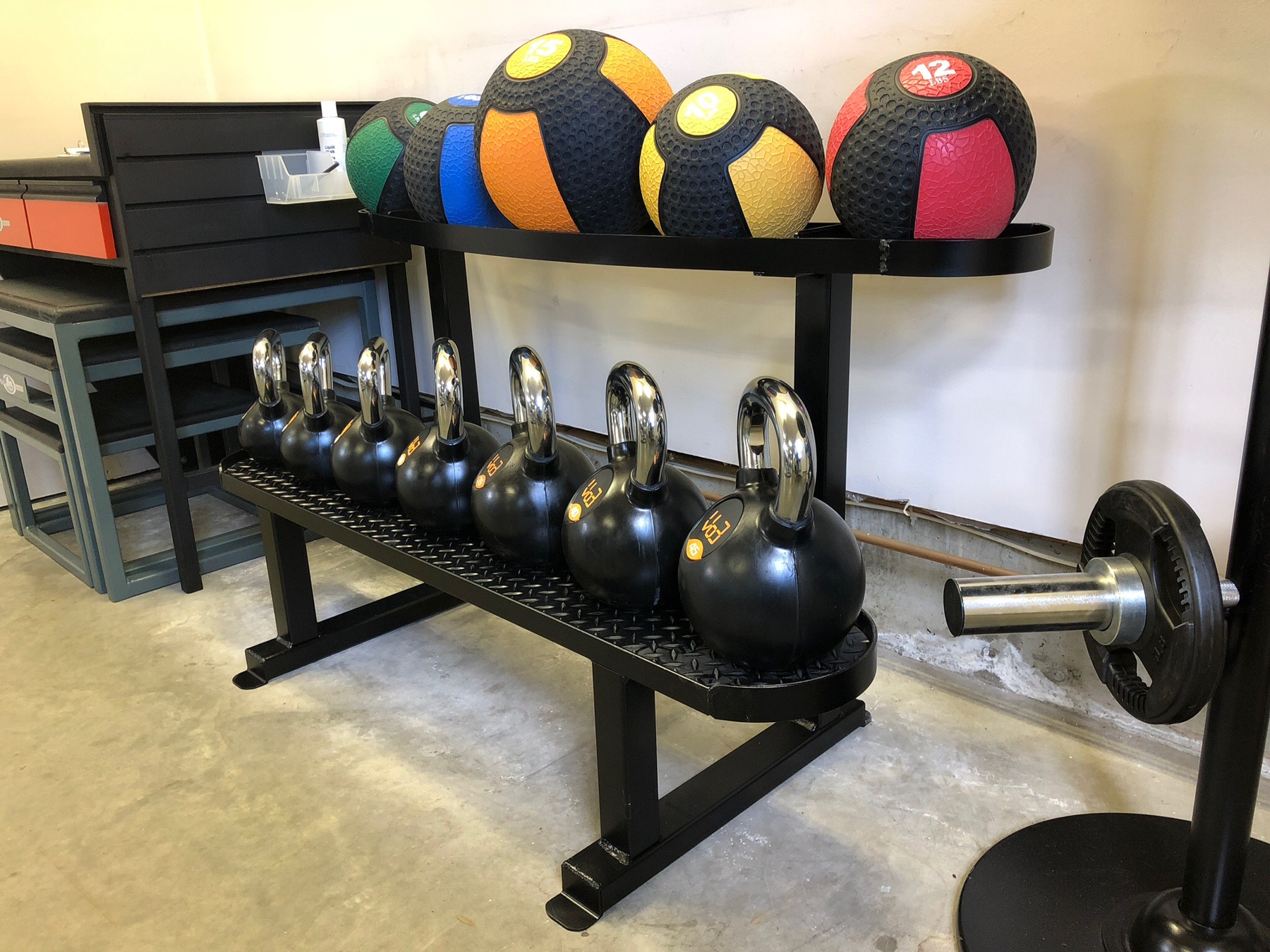 Also had to make this rack for medicine ball and kettle bell storage.