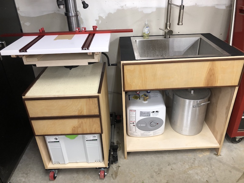 Still need to do some finishing, maybe edge banding or white paint to match the table top and make a pull out tray I think.