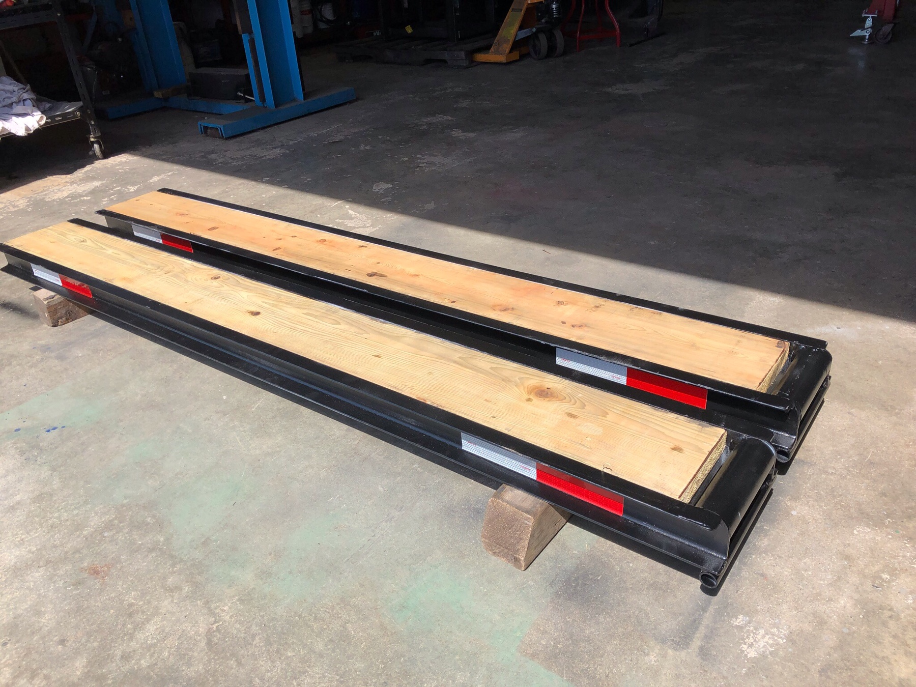 I spent the better part of the weekend building a set of ramps (steel and wood) for my dump trailer. They will be only used for equipment under 7000#.